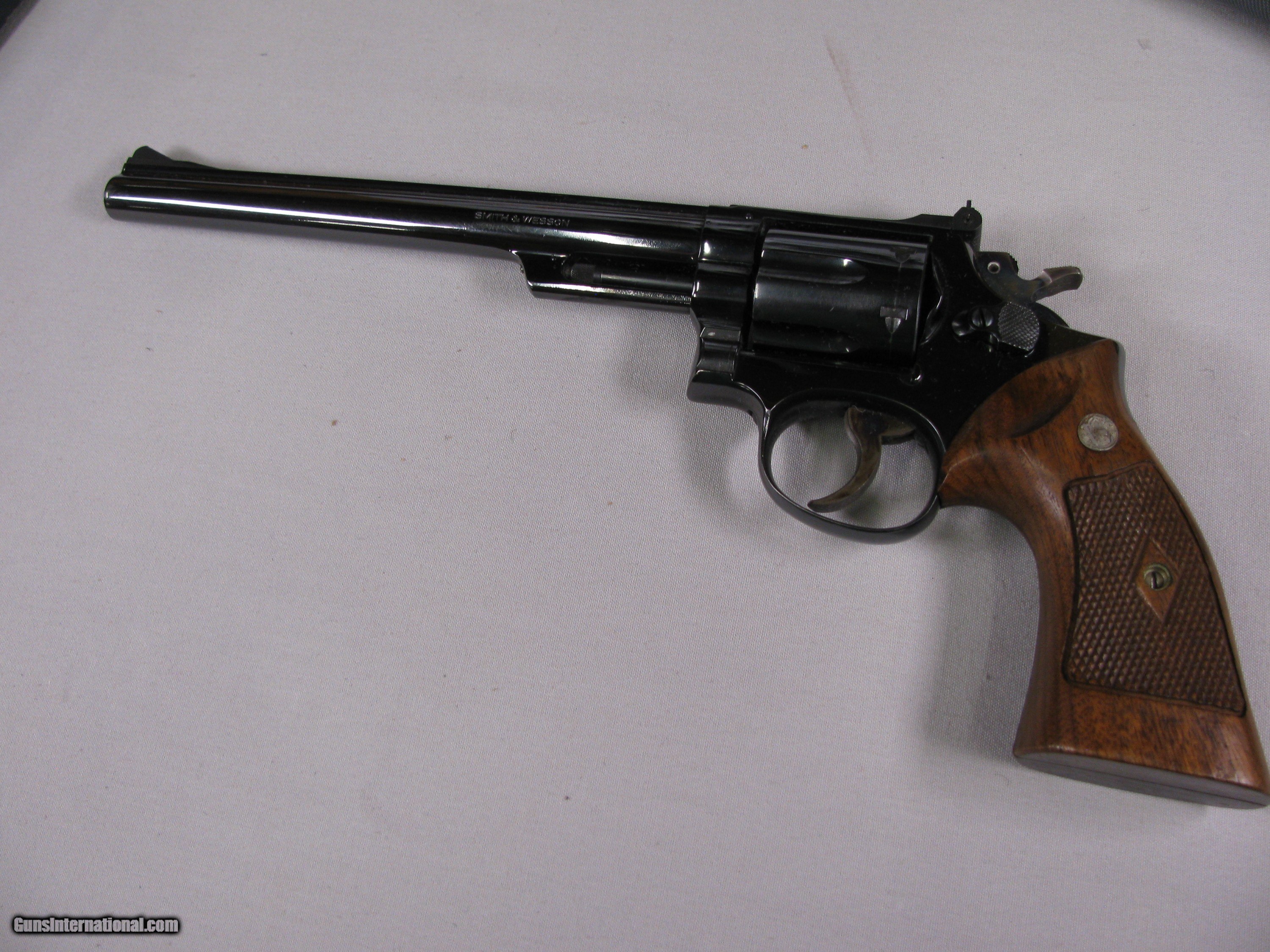 Smith and Wesson 53, 22 Jet Mag, Blue Finish, Walnut Grips, 8 3/8 Barrel, MFG 1961, Box and all Paperwork, Tools and inserts, Also comes with a