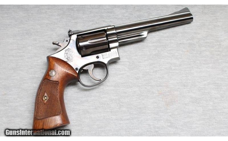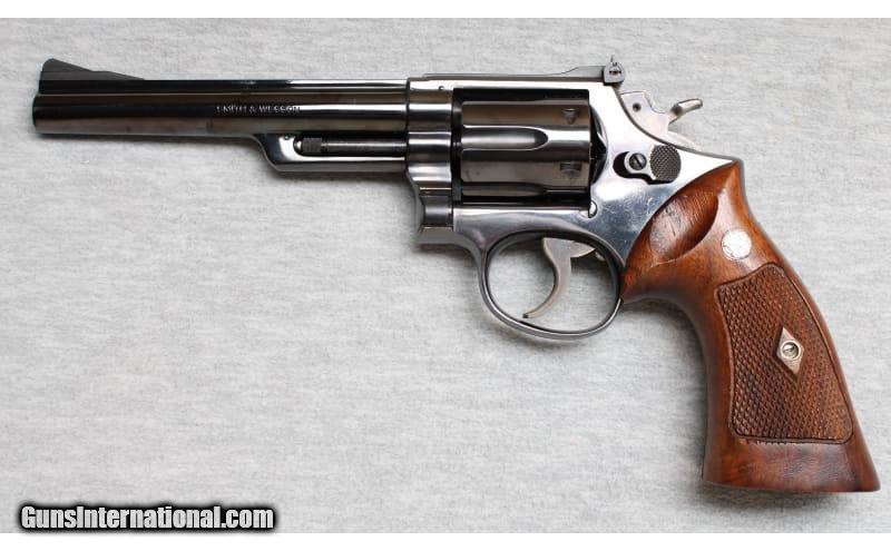 Description: Very good condition, light wear, small nicks & scratches. S&W 6 shot revolver, 6" pinned barrel, blued finish, adjustable sights, double and single action trigger, fluted cylinder for the Remington .22 Jet cartridge, checkered hammer & cylinder latch and S&W wood target grips. A good choice for Smith & Wesson collectors. The .22 Remington Jet (also known as .22 Jet, .22 Center Fire Magnum, or .22 CFM) is a .22 in (5.6mm) American centerfire revolver and rifle cartridge. Developed jointly by Remington and Smith & Wesson, it was to be used in the Model 53 revolver, which first appeared late in 1961. While it traced its origins to potent wildcats such as the .22 Hornet, it was a bottlenecked cartridge based upon the .357 Magnum case necked down to a .22 caliber bullet, with an unusually long tapered shoulder. By 1972, the Model 53 remained the only revolver chambered for it. .22 MAG SOLD Chambers: Revolver Metal Condition: Very good Wood Condition: Grips are excellent Bore Condition: Bright Barrels: 6 Triggers: Double and single action Butt Pad: Wood grips Sights: "Adjustable rear, ramp front sights Item Location: La Vista, NE |