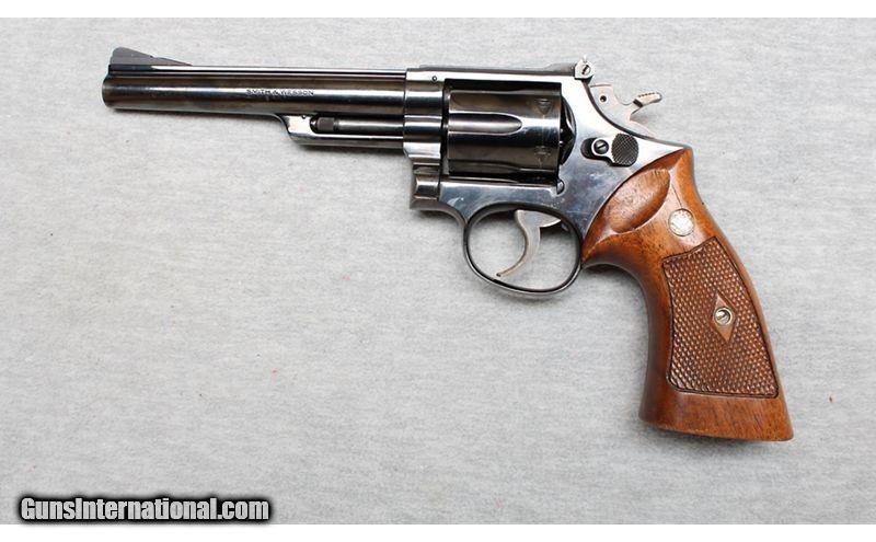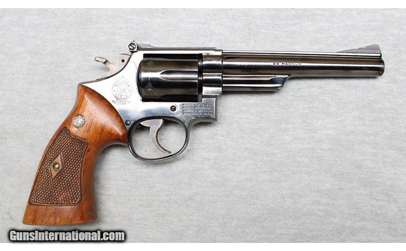 Description: The Smith & Wesson Model 53 was introduced in 1961 and chambered for the .22 Remington Jet. This revolver is also adaptable to .22 Long Rifle utilizing nickel wash coated steel insets which fit into the chambers of the cylinder. The hammer is outfitted with a switch which selects either the centerfire or rimfire firing pin. The revolver is built on the S&W K target frame and a 6-inch barrel. It is equipped with oversize target grips. This is an unusual revolver and is in very good condition. Fewer than 15,000 of these revolvers were manufactured. This is a 4-screw revolver, and it comes with the original box and 6 factory .22 Long Rifle inserts. This revolver was made in the 1961. .22 Long Rifle SOLD Metal Condition: Very Good with slight cylinder ring Wood Condition: Very Good with handling marks Bore Condition: Bright Barrels: 6 Inches Triggers: Factory Sights: Target Item Location: La Vista, NE |