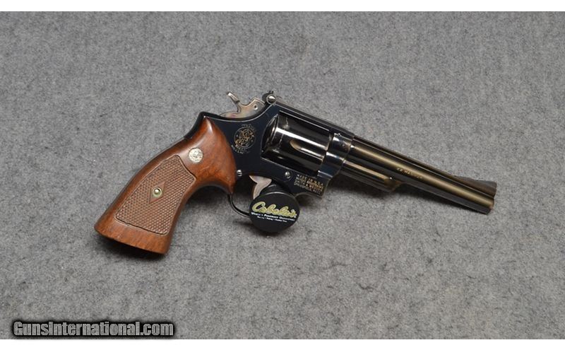 Description: This double action revolver is a Smith & Wesson model 53 chambered for .22 jet/.22 magnum centerfire. This revolver features a case-hardened hammer and trigger, walnut grips, and a blued finish. Important, .22 jet/.22 magnum centerfire will not accept regular .22 magnum rimfire cartridges. .22 MAG SOLD Metal Condition: "Overall good condition, slight loss of finish to sharp edges with light holster wear at muzzle Wood Condition: "Overall good condition, small chip on right hand side grip near base Bore Condition: Crisp rifling Barrels: 6 Inch Triggers: Case hardened trigger and hammer Fore End: Checkered walnut S&W grips Weight: 2 lbz 10 oz Sights: Adjustable rear sight with fixed blade front sight Item Location: Wichita, KS |