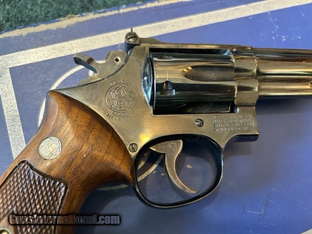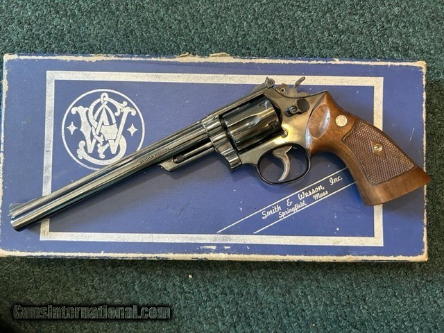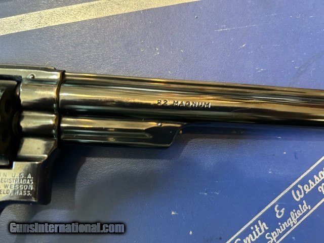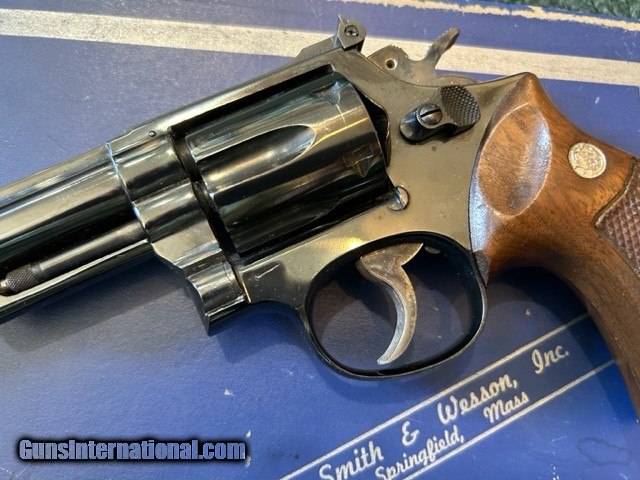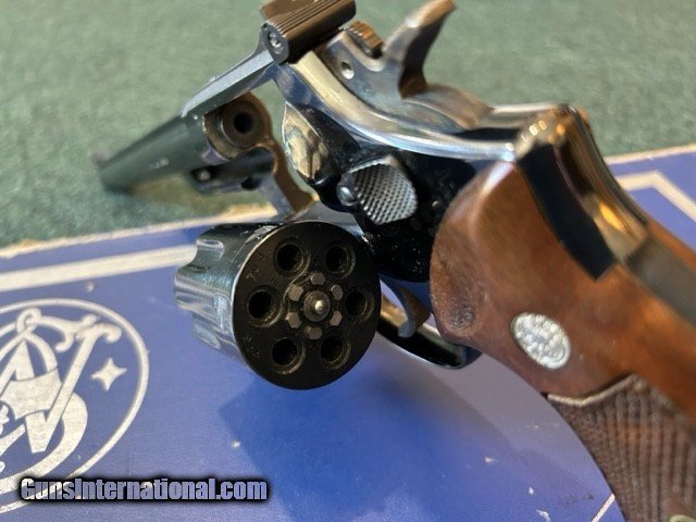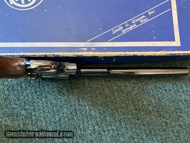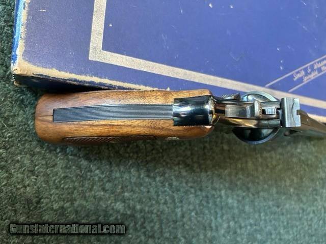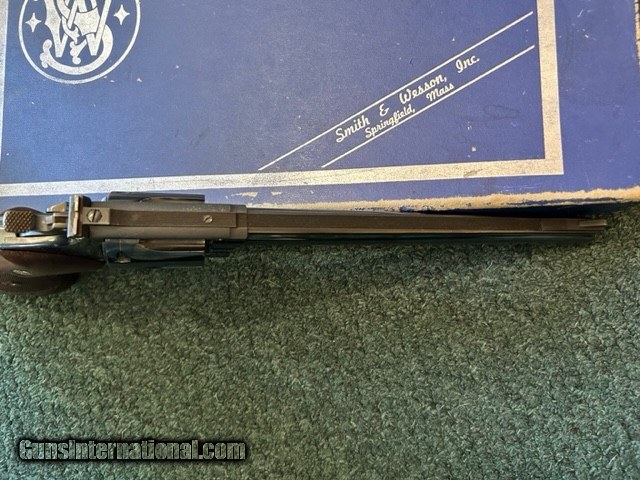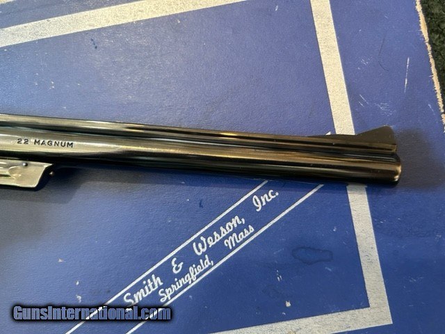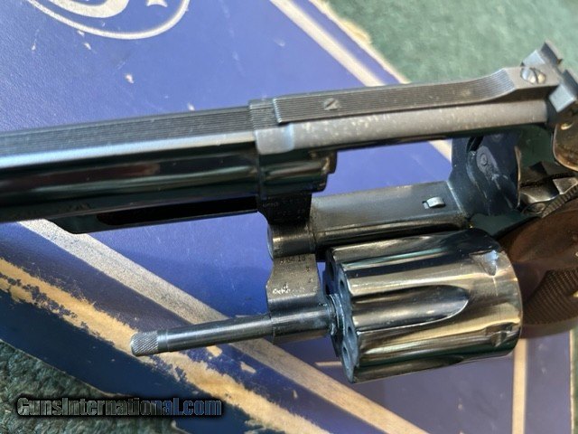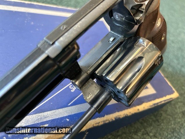 Description: Smith & Wesson, Model 53, .22 Jet Mag, 6 Xtra jet inserts for 22LR, .22 mag exta factory cylinder, 8 3/8" barrel, blue finish, 98% overall, diamond grips, ramped front sight, rollover firing pin feature on hammer, with box. Serial number K443703. For further information and faster service call John at 941-224-5563. SOLD |