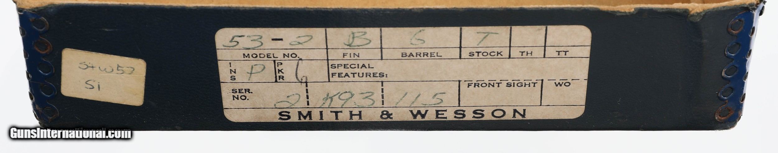 SOLD Handgun Caliber: .22 Remington Jet (.22 Jet, .22 Centerfire Magnum) Manufacturer: SMITH & WESSON Model: 53-2 Serial Number: 2K931?? Barrel Length: 5 7/8 Condition: EXCELLENT |