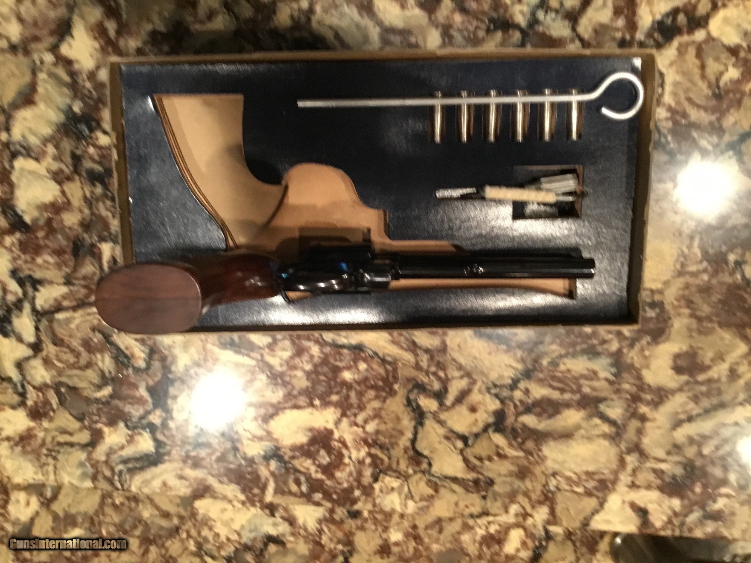 Description: Smith&wesson Model 53 .22 jet with sleeves for firing .22 Mag. Serial Number K475106 manufactured 1962. Barrel is 6" and excellent condition. Target hammer and trigger the case color is very good . The blueing is very good condition as well as the grips. The gun comes with it's original box and tools. The Box is excellent as well the tools. If you are looking for a nice Model 53 you have found it. SOLD Manufacturer: Smith&Wesson Model: 53 Serial Number: K475106 Barrel Length: 6” Caliber Info: .22 Jet & .22 Mag. Condition: Very good 98%+ Metal Condition: 98%+ Wood Condition: 98%+ Bore Condition: Excellent Barrel Type: Revolver rifled Action: Revolver Triggers: Target Stock: Walnut Rib: Solid Finish: Blued Sights: Factory S&W Manufacture Date: 1962 |