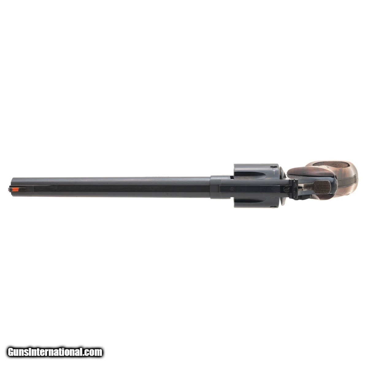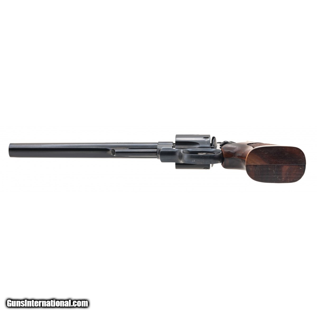 Description: " 8.25"" DASA revolver with a 6-shot cylinder, blued finish & wooden checkered grips. In excellent condition. SOLD |