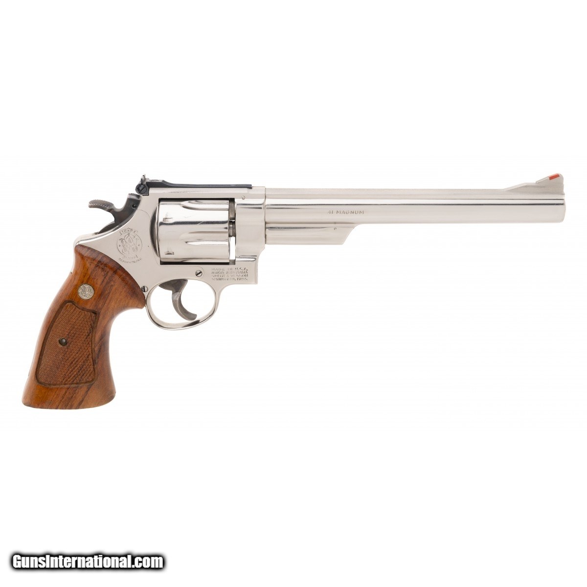 SN: N776467. 1970's production .41 Mag with a 8 3/8"" barrel. Bore is excellent. N-frame revolver with pinned barrel and recessed cylinder. Has nickel finish and wood grips. Overall excellent condition.