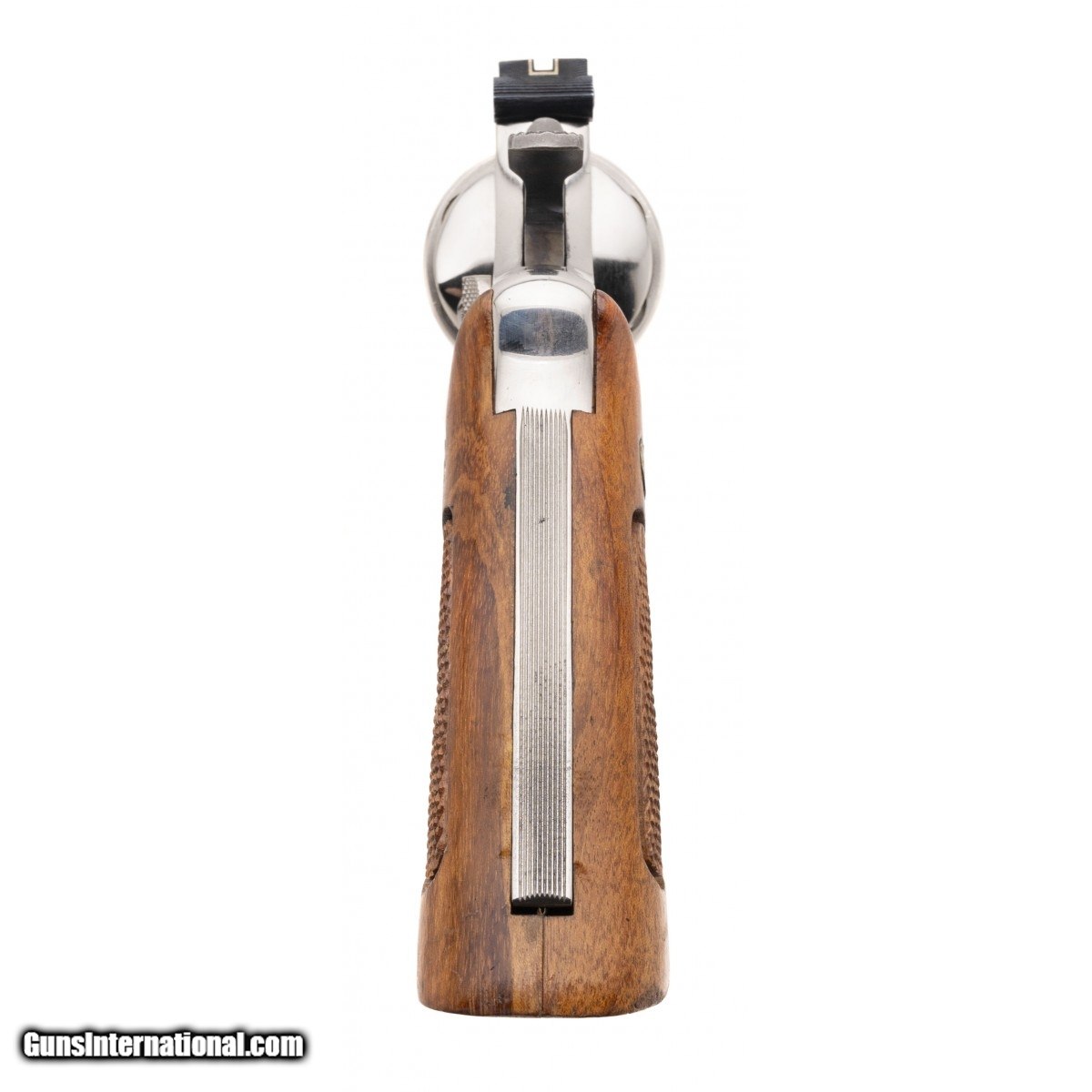 Description: " SN: N776467. 1970's production .41 Mag with a 8 3/8"" barrel. Bore is excellent. N-frame revolver with pinned barrel and recessed cylinder. Has nickel finish and wood grips. Overall excellent condition. SOLD |