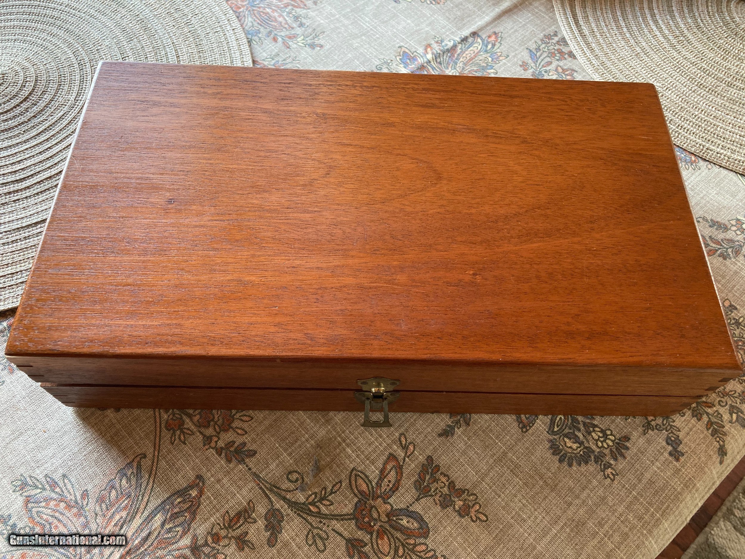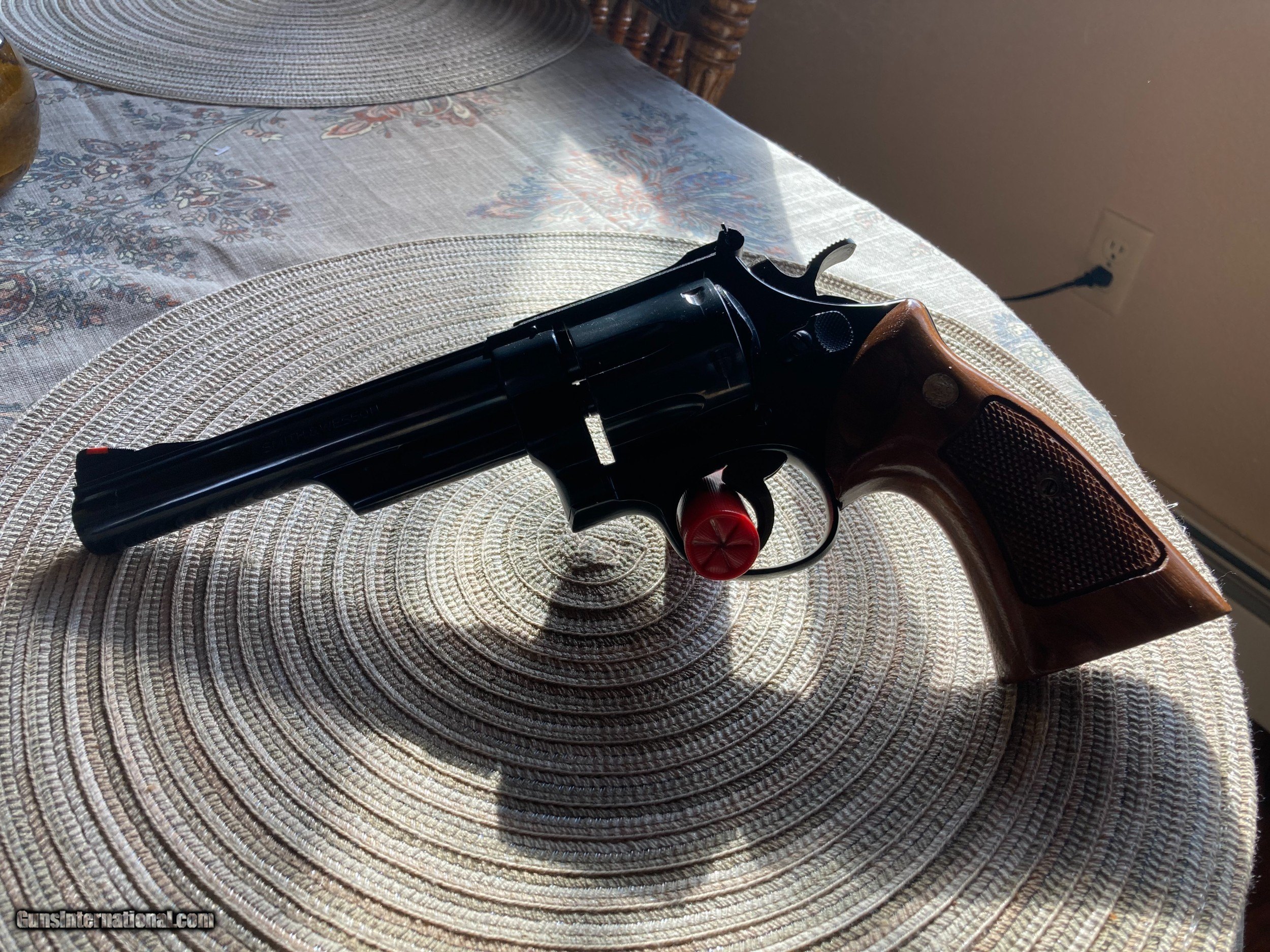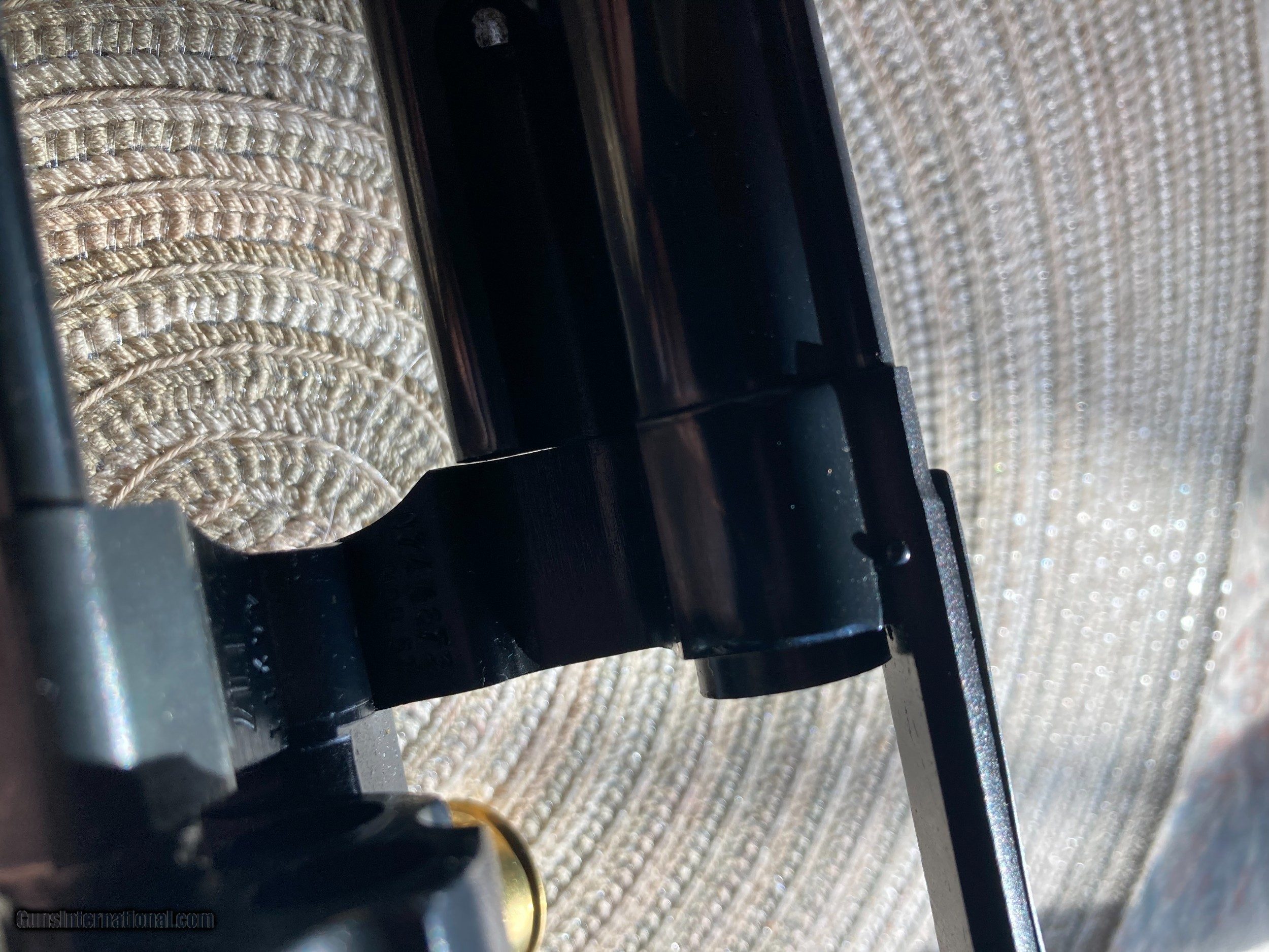 Description: I have for your consideration a pinned and recessed minty 6" Model 57. It is in like new condition with just the slightest beginning of a cylinder turn line. It comes with the paperwork shown and a complete tool kit, all in it's beauiful professionally restored presentation case. SOLD Handgun Caliber: .41 Remington Magnum Manufacturer: S & W Model: 57 Serial Number: N74***3 Barrel Length: 6 Bore: Bright Condition: Excellent Metal Condition: Excellent Wood Condition: Excellent Bore Condition: Excellent Manufacture Date: 1980 |