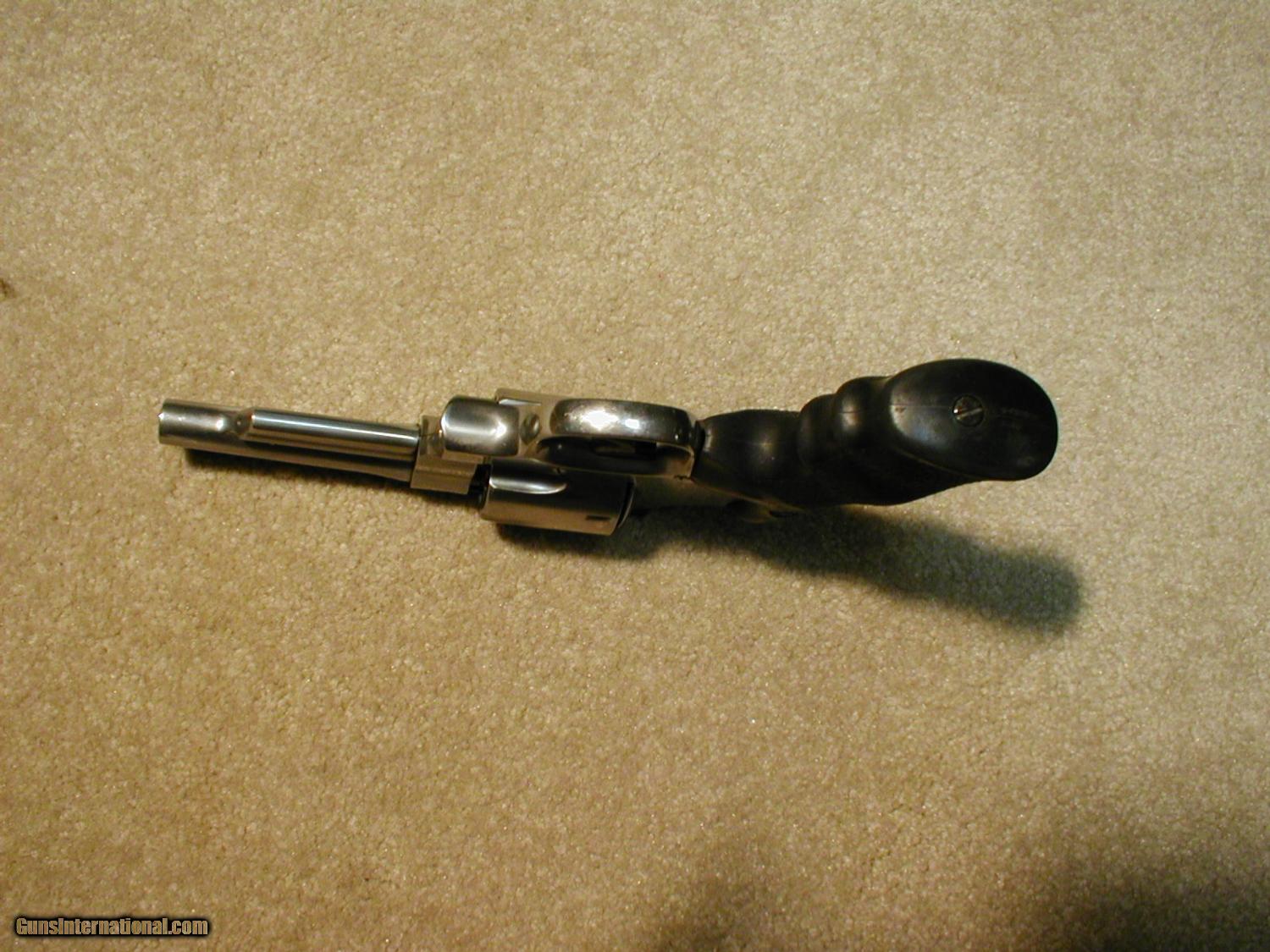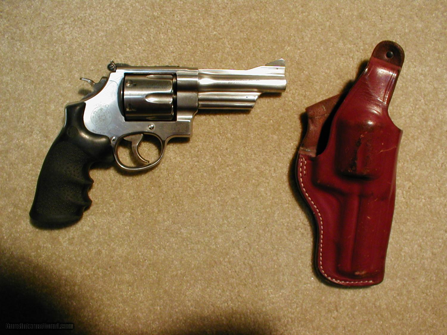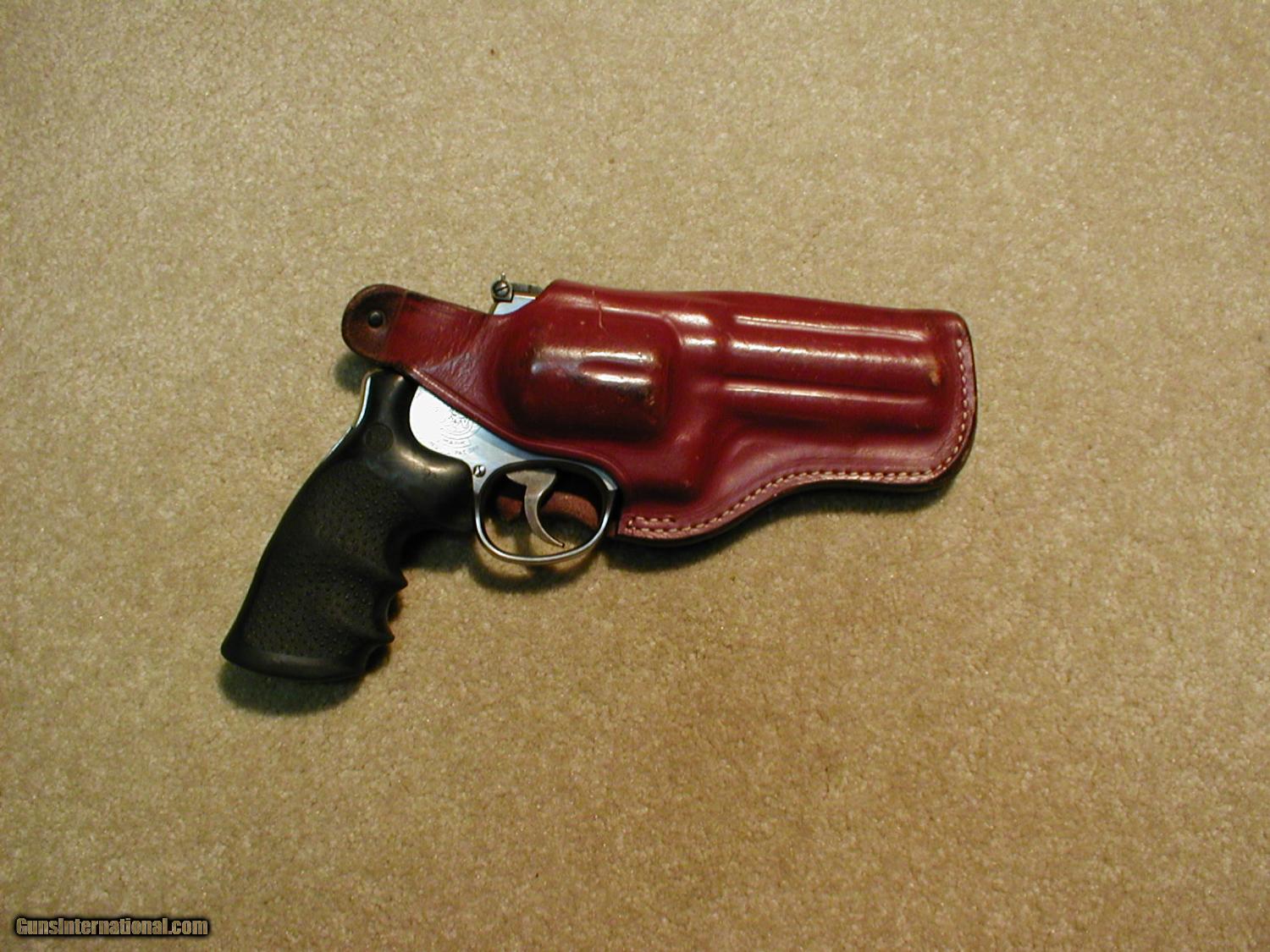 Description: RARE MODEL 657-4 STAINLESS STEEL .41 MAGNUM "MOUNTAIN GUN" WITH 4" BARREL, MADE ONLY IN 1998, this was a lighter weight version of the standard M-657 series in that it had a lighter, tapered barrel to make it more "carry-friendly" in a holster for "mountain hiking" where weight matters (Living in Montana I know about this personally!), this one has been carried and used a little, but is overall fine condition as one would expect from a stainless steel revolver, Hogue rubber grips show some chipping at the upper edge on the left side- easily and cheaply replaced, tight action, exc. bright bore, marked "MOUNTAIN GUN" on the right side of the barrel (photo looks like this marking is worn- that's just light reflection- it's all there), almost never seen variation that saw very limited production, comes with a quality leather thumb break right hand holster. SOLD Manufacturer: S&W Model: 657-4 Mountain Gun Serial Number: CCY 4XXX Caliber Info: .41 Magnum Condition: Excellent Barrels: 4 |