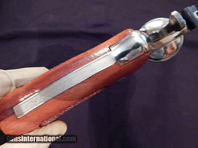 Description: 1981 Smith & Wesson 41-Magnum, Model-57, approx. 6" barrel, Nickel finish. This model has target sites and grips, combat hammer and trigger. Serial number N8843xx. The Nickel finish is perfect, maybe a little bit of tarnish that will come off with Flitz, no flecs or visible handling marks. If memory serves, the revolver has had 6 rounds through it. I have the box somewhere, but at this point will only selling the revolver only. Will ship to FFL of your choice, Buyer must send a hard copy of the FFL with payment. Call Rob 520-210-2530 SOLD Manufacturer: Smith & Wesson Model: 57 Serial Number: N8843xx Caliber Info: 41-Magnum Ejectors: Yes Condition: Like New Overall Metal Condition: Excellent Wood Condition: Mint Bore Condition: Excellent Action: Double action/Single Action Manufacture Date: 1981 Item Location: Sierra Vista, AZ. |
