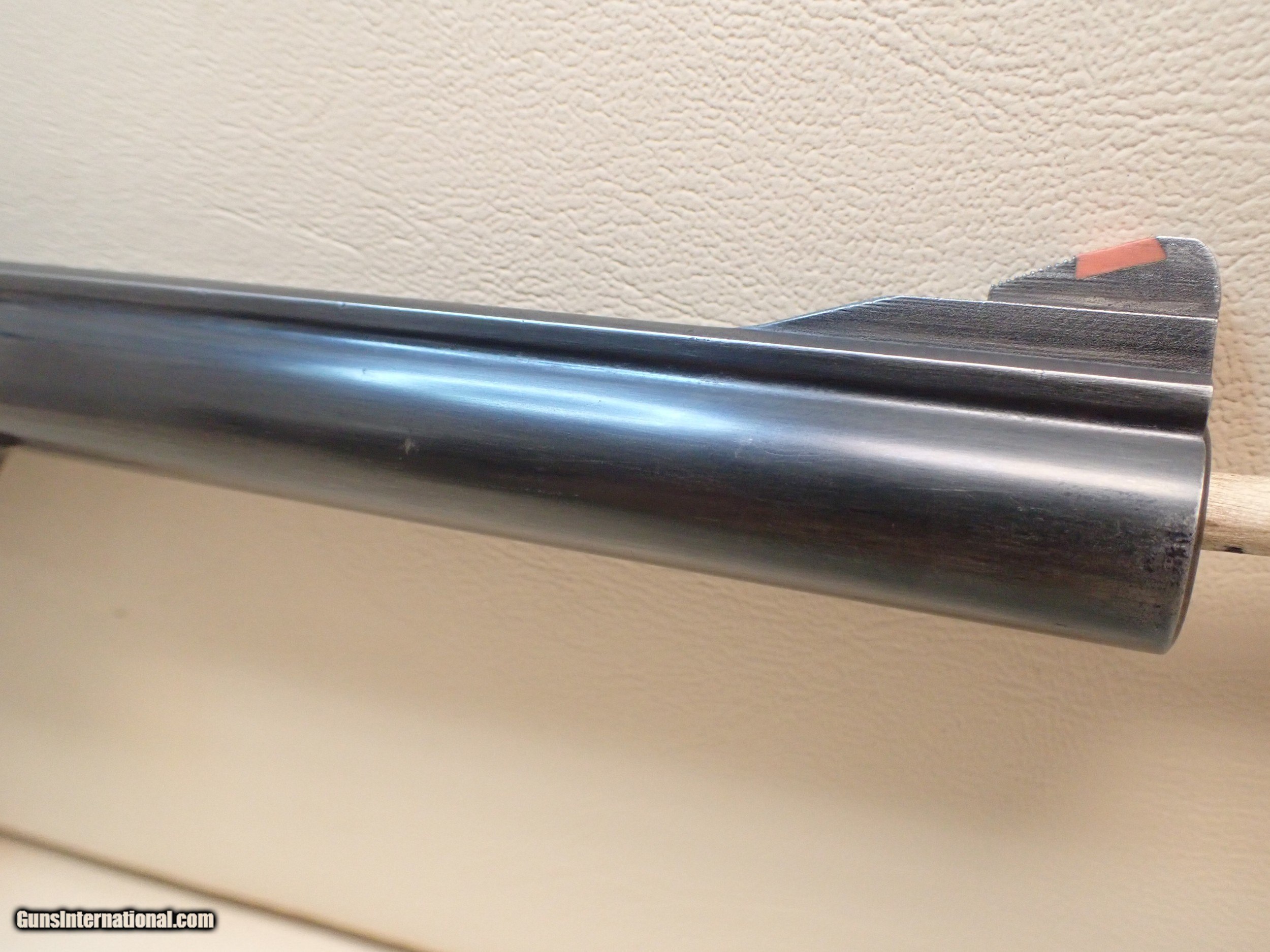 Description: **SOLD**Smith & Wesson Model 57 .41 Magnum revolver, dated to 1980. This revolver features the robust steel N-Frame, with a fine blued finish, and a lengthy 8-3/8" barrel, fitted with a red ramp front sight and an adjustable rear. The revolver has a recessed cylinder, with an un-pinned barrel, indicating that it is a transitional revolver, while they were gradually removing barrel pins and recessed cylinders from production. The revolver is fitted with correct S&W N-Frame grips, and they fit properly, however they are not original to the gun, and the serial number on the metal grip cap is not matching. Otherwise, they fit and look great. The pistol is in great working condition with a very smooth trigger mechanism, as well as solid timing and lockup. The bore and chamber surfaces are in great shape with brilliant surfaces. Some blueing on the sides of the barrel is worn, as well as some spots on the frame, as shown on the photos. Please refer to the photos to further assess the condition of the revolver. A wonderful collectible and an top-notch shooter! No handgun sales in MA.**SOLD** SOLD Manufacturer: S&W Model: 57 Serial Number: N885470 Caliber Info: .41 Magnum |
