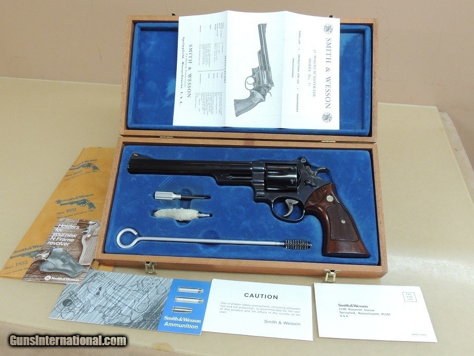 Description: Smith & Wesson Model 57 .41 Magnum Revolver in the Factory Case, 8 3/8" Barrel with mint bore, timing and lock up correct, production circa 1979', Target Hammer, Target Trigger, Target Grips, 98% condition $1600 Helpful Information: *Please make sure to include our inventory number and or Item description in text messages * *If this item has the Box, Papers or various extra items they will be pictured and described* *This item listing is in stock and available for purchase unless the Sale Pending Tag is present.* *Sorry no sales to California* *Payment Options* *Postal Money Order, Cashiers Checks, Personal Checks (Item held until Check Cleared), Visa or Master Card 3.5% fee added to total sale* *Layaway 150 days, No Interest, Pay any way, any time you like over the term, Deposit required & terms and conditions apply* *GA residents 8% sales Tax Applies* *Best Phone Number for Calls or Text 229-424-8450* *Shipping & Insurance $55.00* *Realistic offers are always considered* *Our 27th year full time in the Quality Arms business* *We started listing with GunsInternational since the beginning 03/20/2007* SOLD |