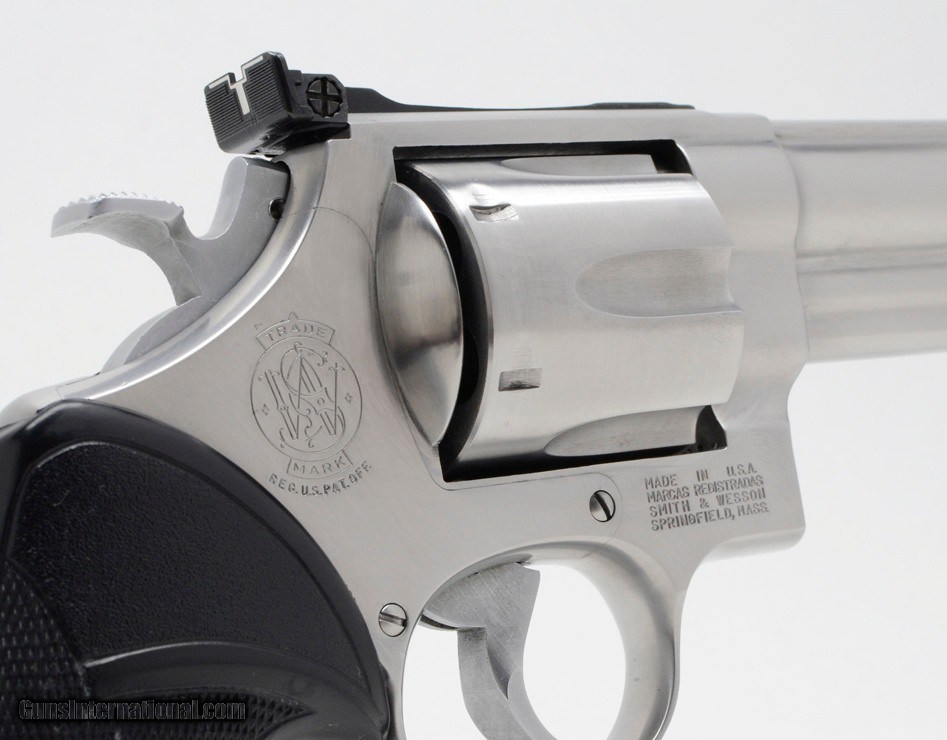 Description: Smith & Wesson Model 657 41 Mag. 6 Inch Satin Stainless. Very Clean. With Holster AVAILABLE FOR PURCHASE AT OUR ON-LINE STORE The Smith & Wesson Model 657 is basically a Model 57 in Stainless Steel. Smith & Wesson offered an all stainless steel version of the Model 57 as the Model 657.[5] The Model 657 was introduced in 1986.[6] The Smith & Wesson Model 57 is a large frame, double-action revolver with a six round cylinder, chambered for the .41 Magnum cartridge, and designed and manufactured by the Smith & Wesson firearms company. The gun was designed as a weapon for law enforcement agencies. However, due to size and recoil it found more favor with civilian target shooters and hunters. This firearm is very clean and in excellent condition. The Pachmayr rubber grips have some very minor scuff marks. Gold Medallions With Uncle Mikes Black Cordura Holster SPECIFICATIONS