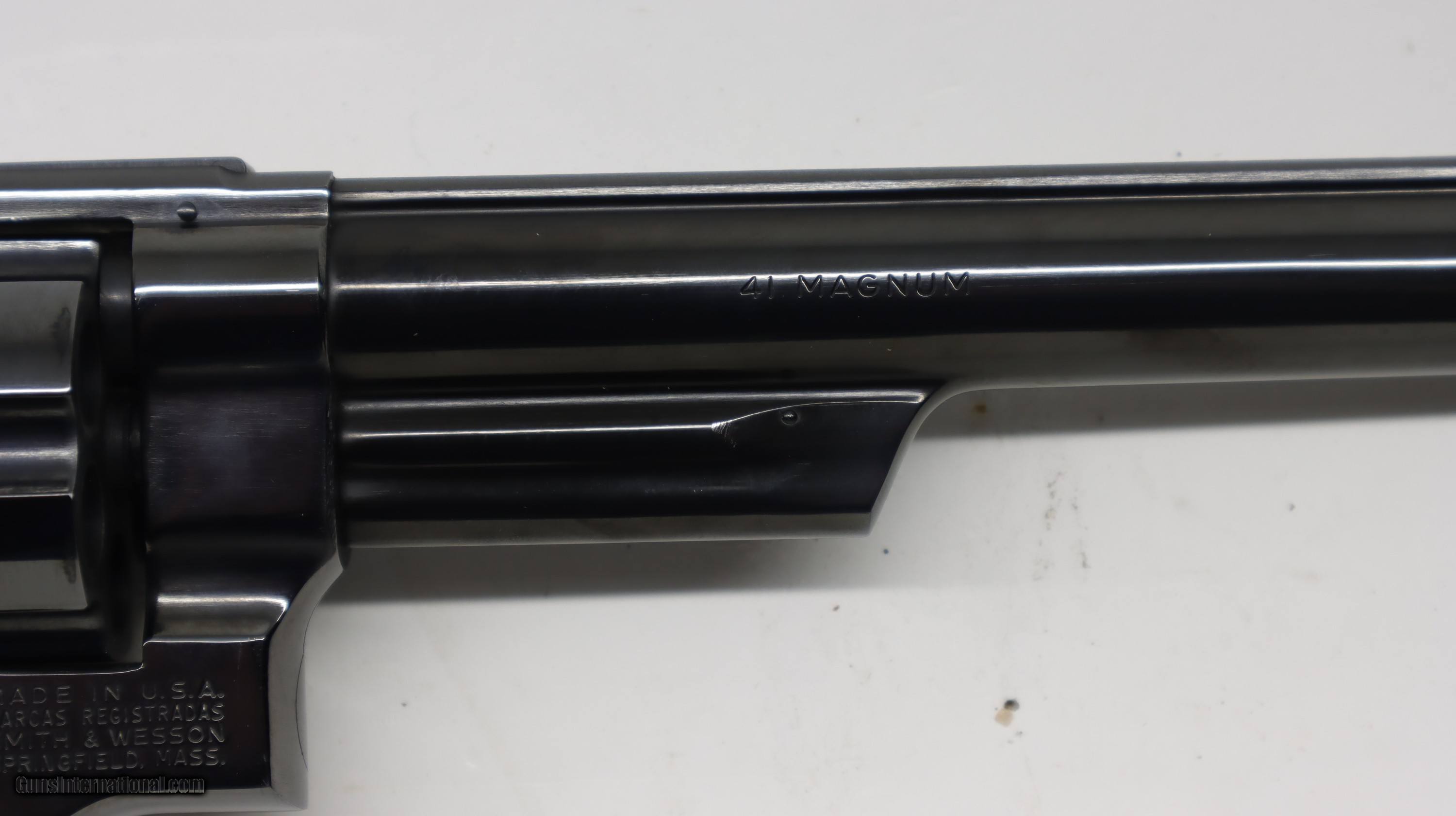 Description: Smith & Wesson S&W 57 No Dash 41 Mag, 8 3/8" barrel with Combat Grips, SN is N7067xx. Factory finish on both wood and metal, nice gun, not shot much at all. We will trade for silver and gold. All my guns (except layaway) come with a non-firing, 3 day unconditional return privilege, from the day UPS delivers to your dealer. Buyer pays shipping both ways if the gun comes back. Please make sure to make it to your FFL to inspect within the 3 days. We accept personal check, any certified funds, Vennmo or Zellle. We can also take your credit card, +3%. Email me if you would like these pictures sent to you, they will come through bigger and better than on the listing page here. We do offer Layaway. Our standard terms are 25% down, 90 days. Initial deposit is not refundable. Layaway guns do not have a return/inspection period. Email me with any questions. Please check your local laws to confirm it is legal to own in your state! Buyer pays $30 shipping and insurance to your FFL in the lower 48. AK, HI or PR is extra. I will ship to California, as long as it is legal, NO PROBLEM! I am a licensed FFL, and will include a copy of my FFL with the gun for your dealer’s records. I will ship to a C&R if the gun is eligible. I will ship to California, but you need to confirm the gun is legal where you are, California or other. WE BUY AND CONSIGN GUNS AND GUN COLLECTIONS! Will travel! I am always looking for good clean, old original Winchesters to buy, consign, or trade, especially Pre '64's model 70's and model 54's. WE ALSO TRADE FOR CLASSIC CARS AND TRUCKS! We also trade for gold and silver. SOLD Handgun Caliber: .41 Remington Magnum Manufacturer: Smith & Wesson Model: 57 Barrel Length: 8 3/8 Condition: Used |
