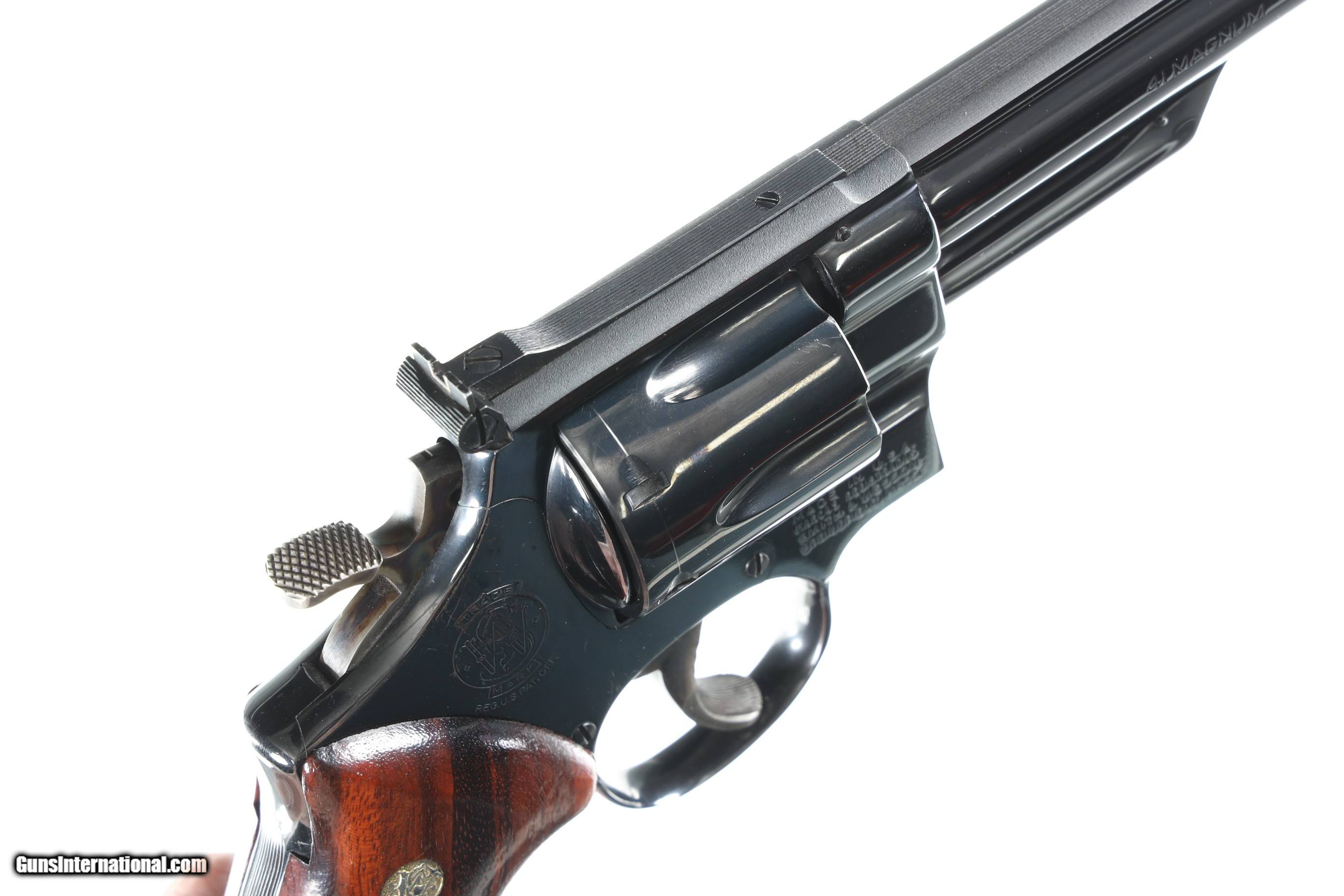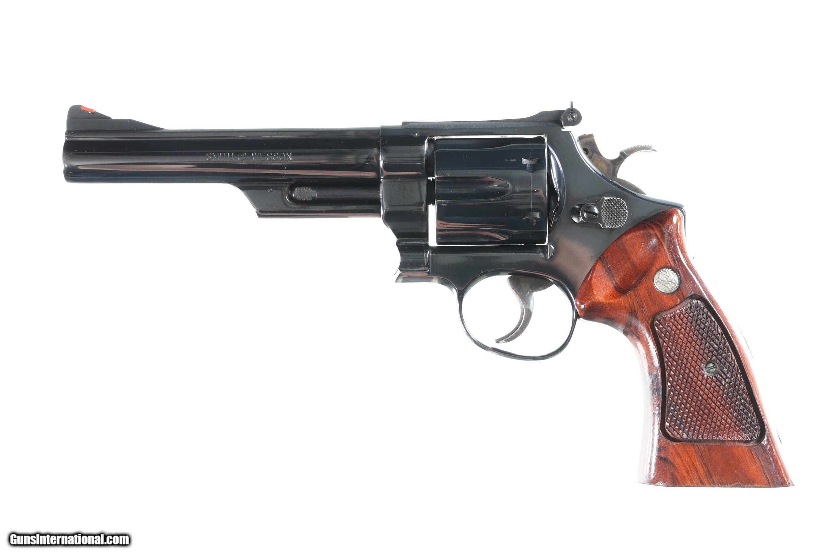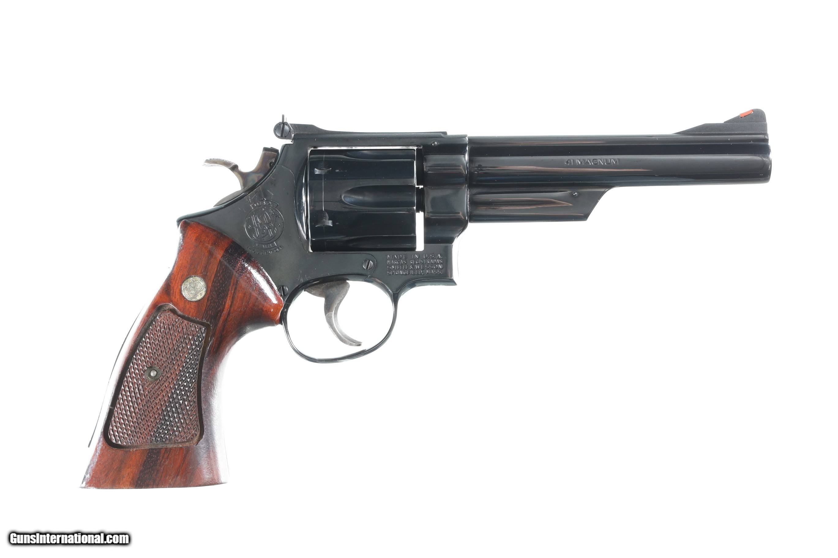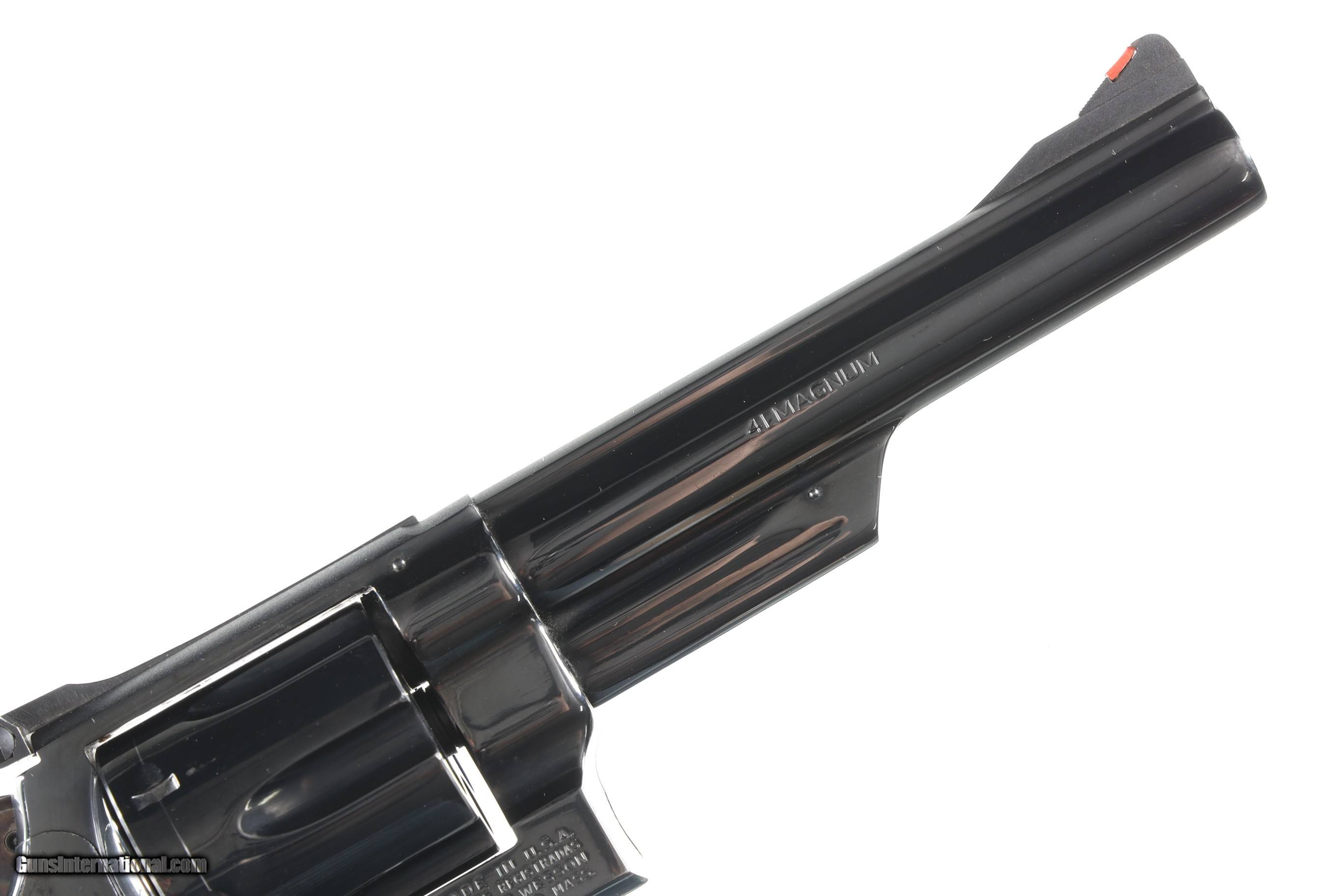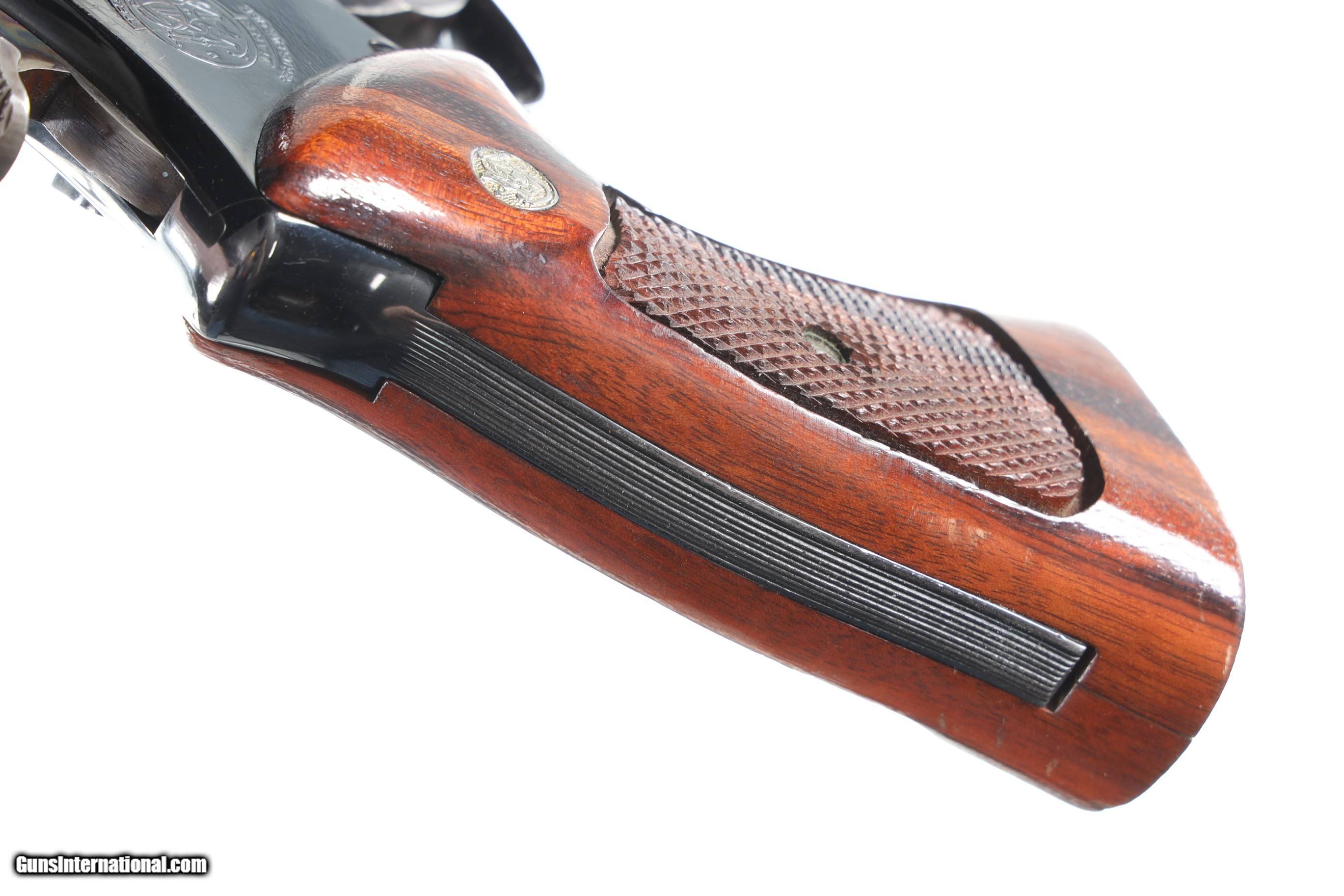 Description: Pinned barrel and recessed chambers, target hammer, target trigger, red ramp and white outline sights. Condition is excellent with a touch of edgewear at muzzle and high points of sights, grips are very fine with some minor finish blemishes, mechanically excellent. Manufactured c. 1975-1976. • Free Shipping, No Credit Card Fees. • Lay-a-way available for this firearm. • 1/3 Down, a 1/3 in 30 Days 1/3 in 60 Days. SOLD Handgun Caliber: .41 Remington Magnum Manufacturer: Smith & Wesson Model: 57 Serial Number: N334955 Barrel Length: 6" |