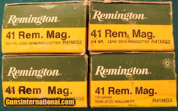 Description: S&W discontinued the 357PD 41 magnum some time ago. Very few appear for sale. this one has been fired very little and come with two sets of grips and two speed loaders. Comes with four boxes of factory ammo, three are 210 grain semi wadcutter and one is 170 jacketed hollow point. Price for 357PD with the ammo is $1265 plus $35 shipping for revolver plus $25 shipping for the ammo that has to be shipped separately. More photos on request. Lay-a-way available, no credit cards. If ammo is not needed, discount $120 from price. Produced:2005 - 2007 Caliber:.41 Rem Mag Cylinder:6-round Frame:scandium alloy Grips:smooth wood Sights:fiber-optic front, adjustable rear Barrel Length:4 in. Overall Length:9.5 in. Weight:27.5 oz. SOLD |