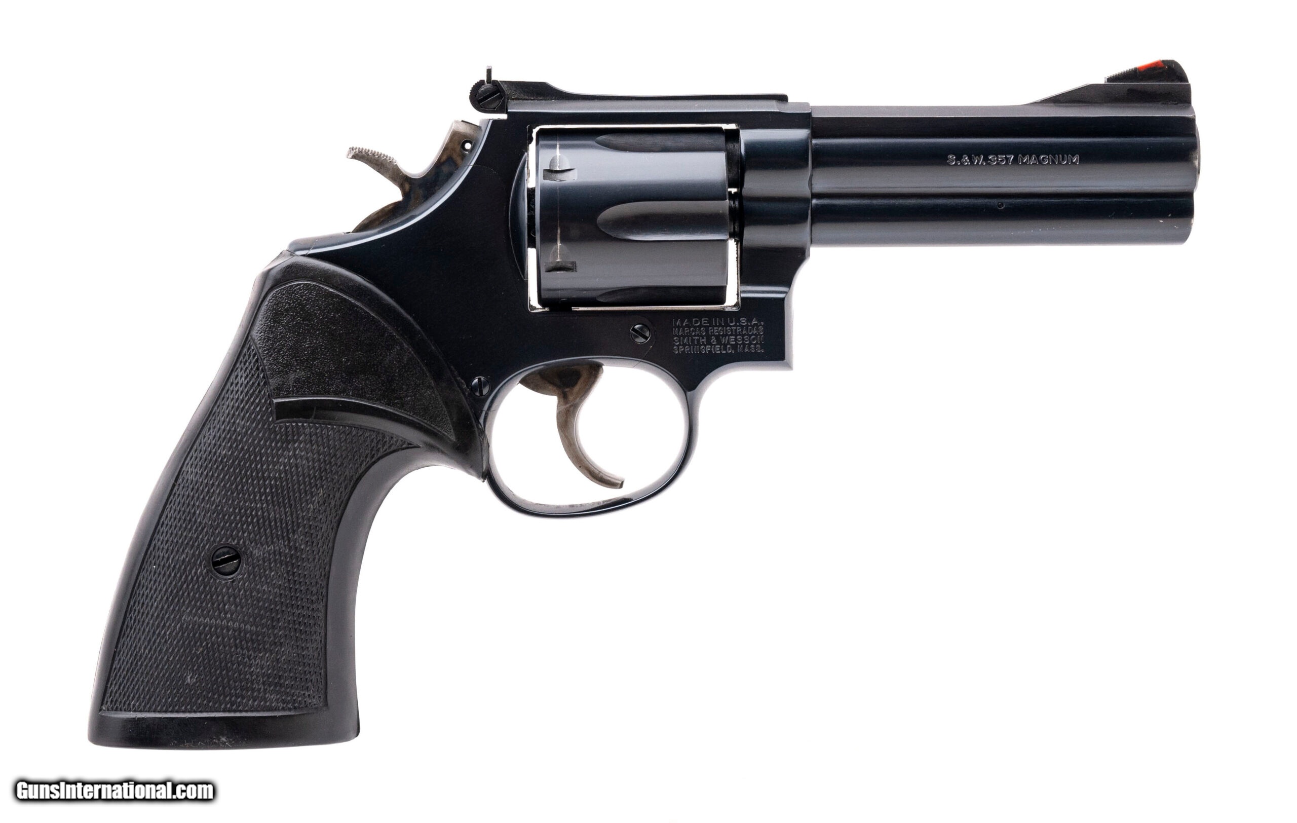 Description: "SN: AAN8343. Made circa 1980s, .357 Magnum with a 4"" barrel. Bore is bright with strong rifling. Vintage L-frame revolver. Blued finish shows light carry wear but is in very good condition. Pachmayr rubber grips are in very good condition. Comes with box. SOLD |