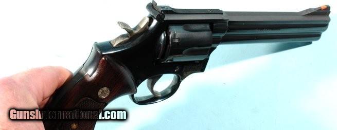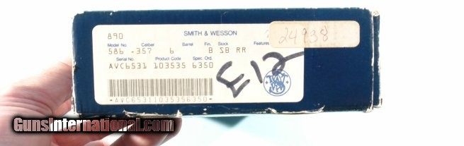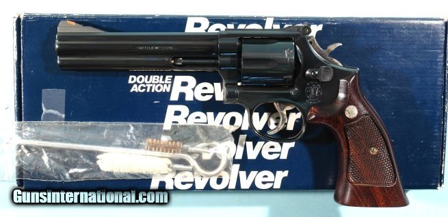 1987 SMITH & WESSON MODEL 586 586-1 .357 MAGNUM CAL. BLUE 6” REVOLVER IN ORIG. BOX.