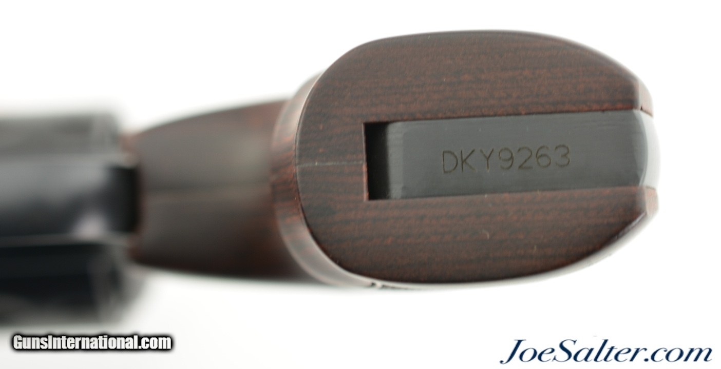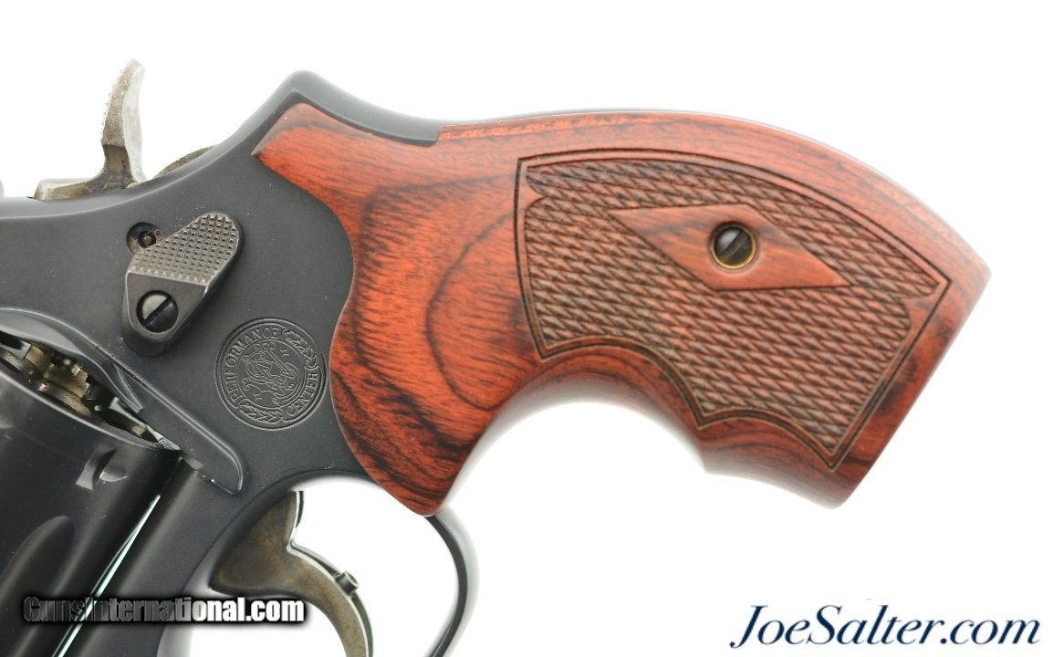 Description: Serial #DKY9263, .357 Magnum, 3 inch ported barrel with a bright, excellent bore. This is the Performance Center Smith & Wesson Model 586-7 L Comp revolver featuring PowerPort Vented barrel, Tritium Night Sight, Trigger Overtravel Stop and a Performance Center Tuned Action. In excellent condition the metal finish in this 7 round revolver remains virtually intact, 98-99% with only a turn ring for loss. It comes in the original Performance Center Gray plastic box numbered to the gun with both wood and rubber grips both in excellent condition, lock and manual. The lock up is tight and mechanically the gun is basically as new. FFL SOLD |