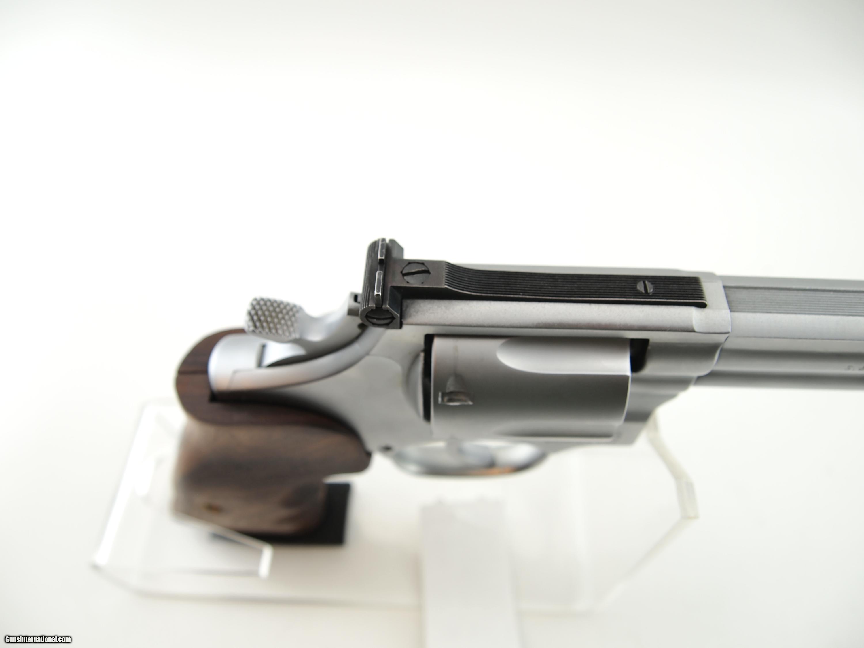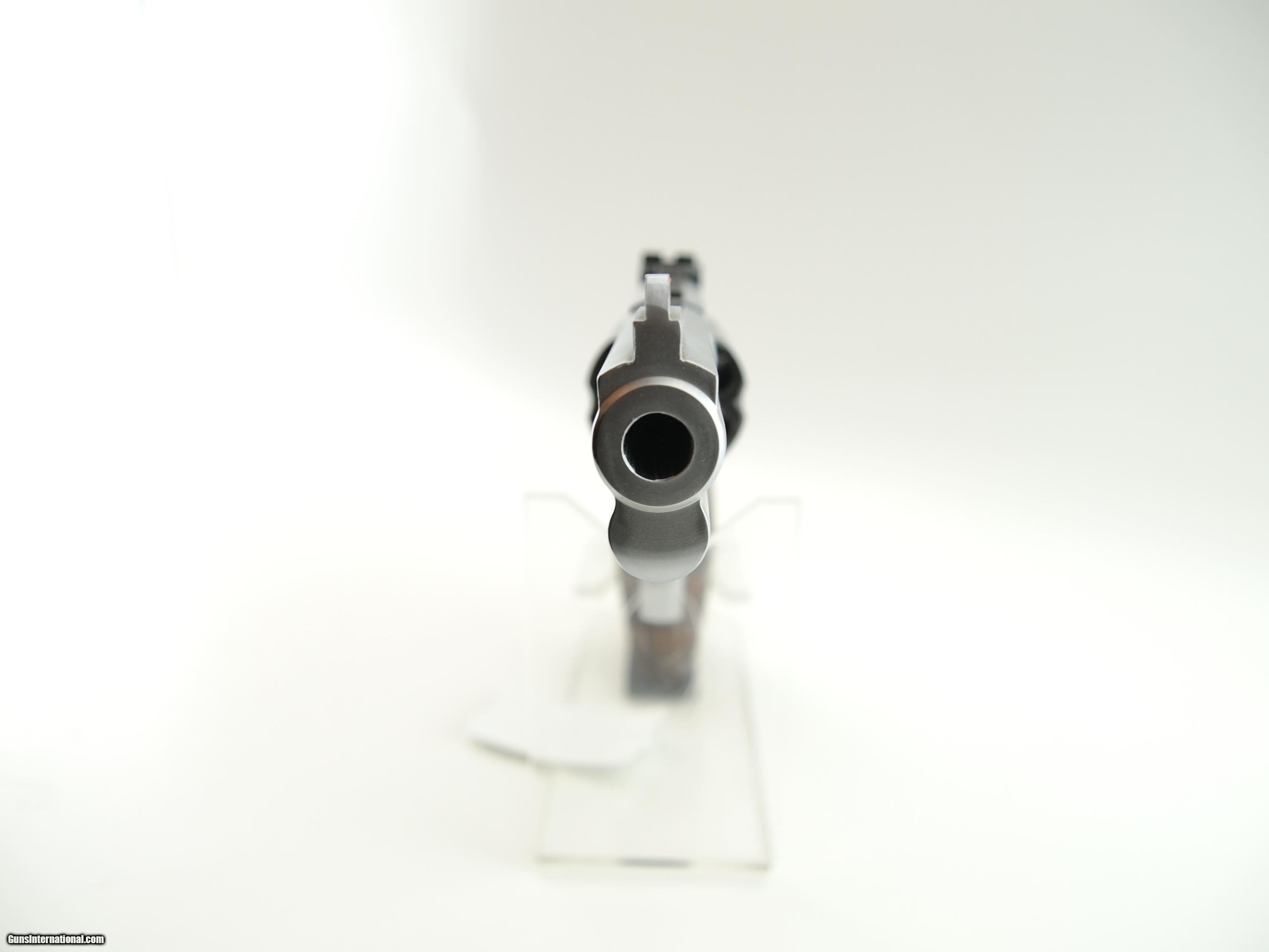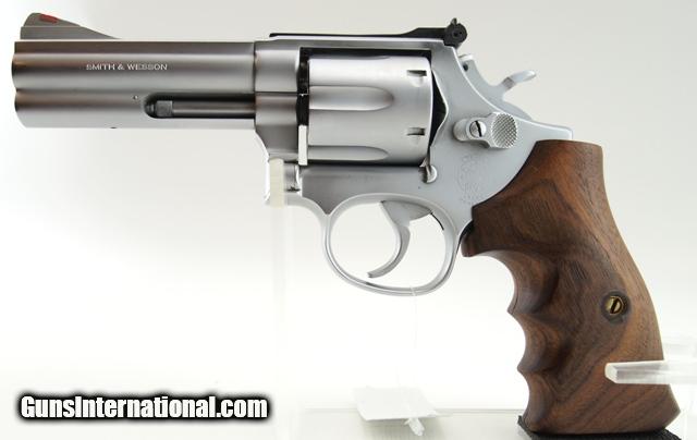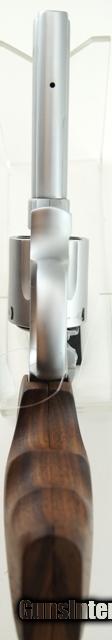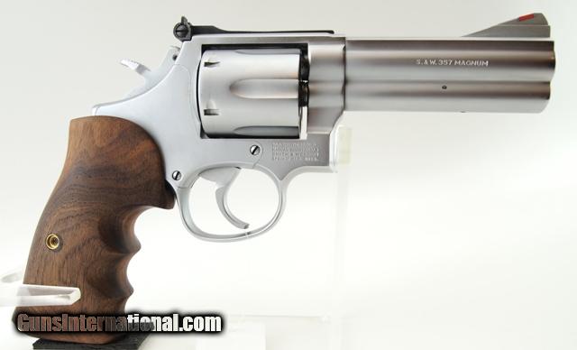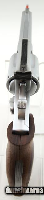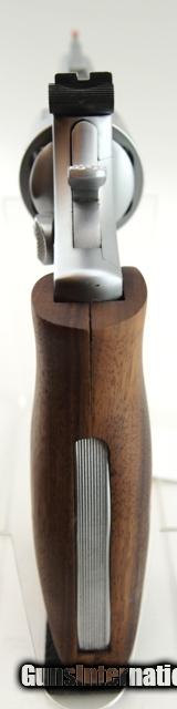 Description: S&W, 586, .357 Mag, 4" bbl, bright shiny bore, good rifling, professionally refinished to a satin nickel finish, adjustable rear sight, front red ramp, and custom wood grips. Add 3% for Credit Card Shipping $25.00 SOLD |
