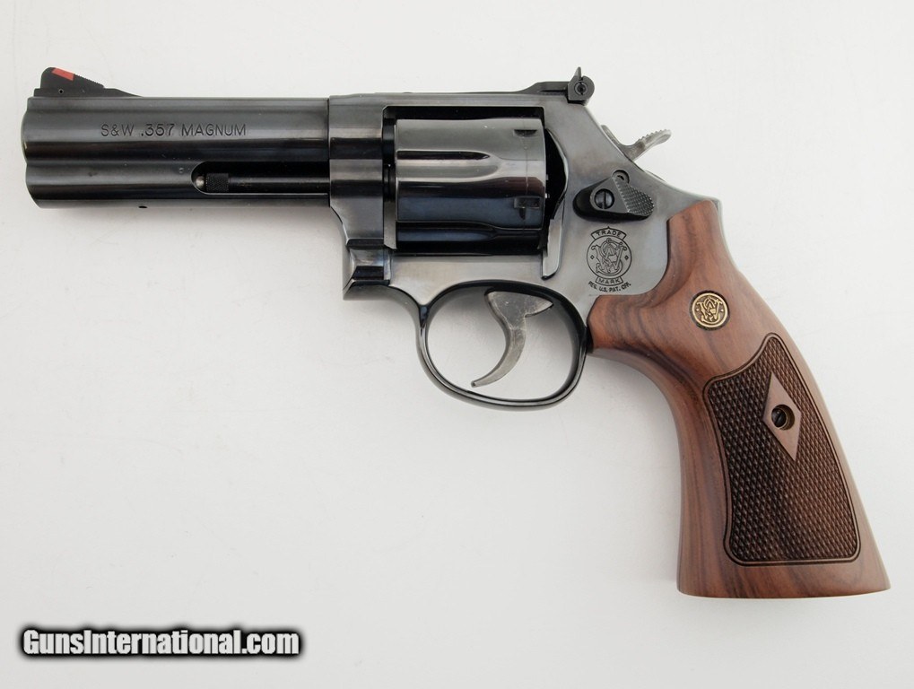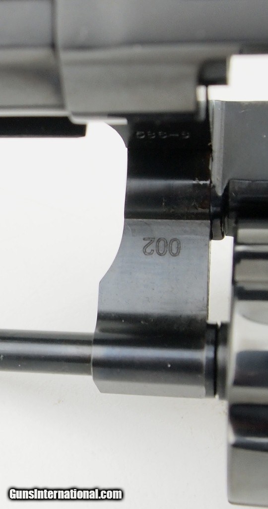 Description: S&W 586-8 .357 Mag WBox, 4" bbl, bright shiny bore, good rifling, blued finish, adjustable white outline horseshoe rear sight, ramp front sight, color case hardened trigger - hammer, and very nice checkered walnut stocks with S&W medallions inset. This is a very clean gun. Looks new! Add 3% for Credit Card Shipping $25.00 SOLD |