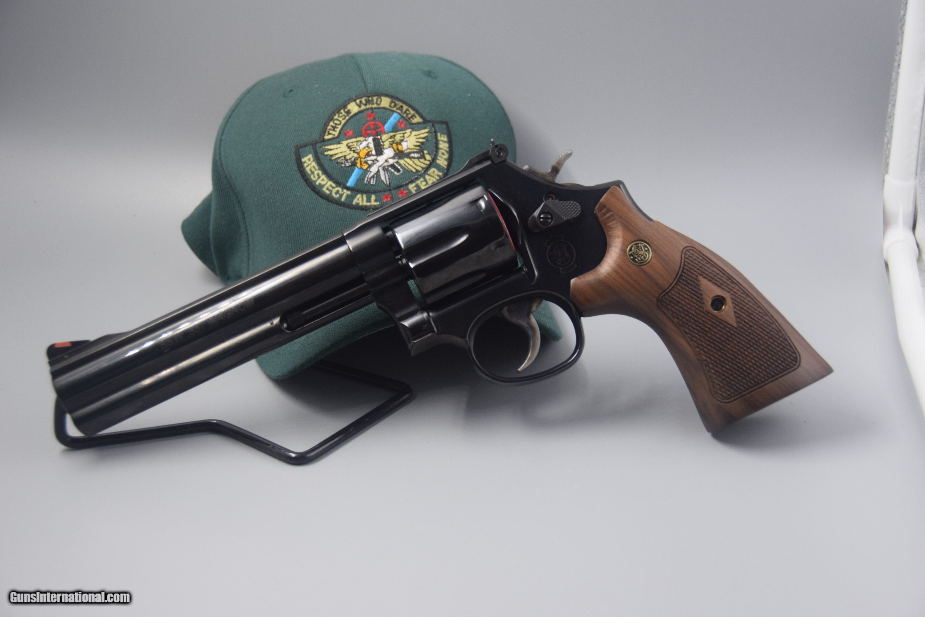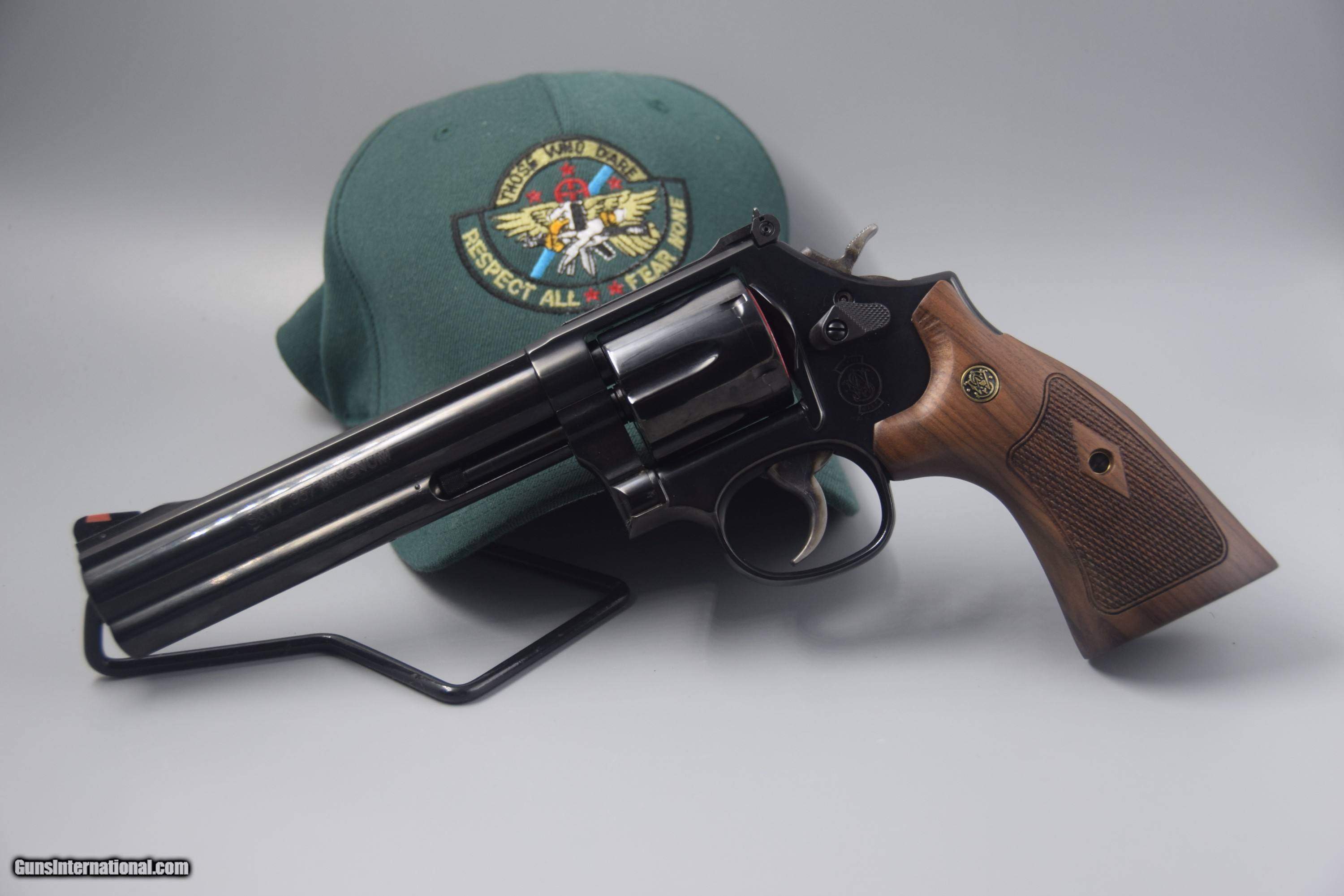 Description: Here's another hard-to-find, new-in-box, SMITH & WESSON MODEL 586 "DISTINGUISHED COMBAT MAGNUM" BLUED .357 REVOLVER WITH A 6-INCH BARREL. This revolver is CA. LEGAL ALSO... This classic beauty is offered at ONLY $899.95 plus $35 FLAT-RATE shippiing and insuranceto the EAST; and $45 to the WEST COAST, with NO ADDITIONAL FEES for credit card use.... SOLD |
