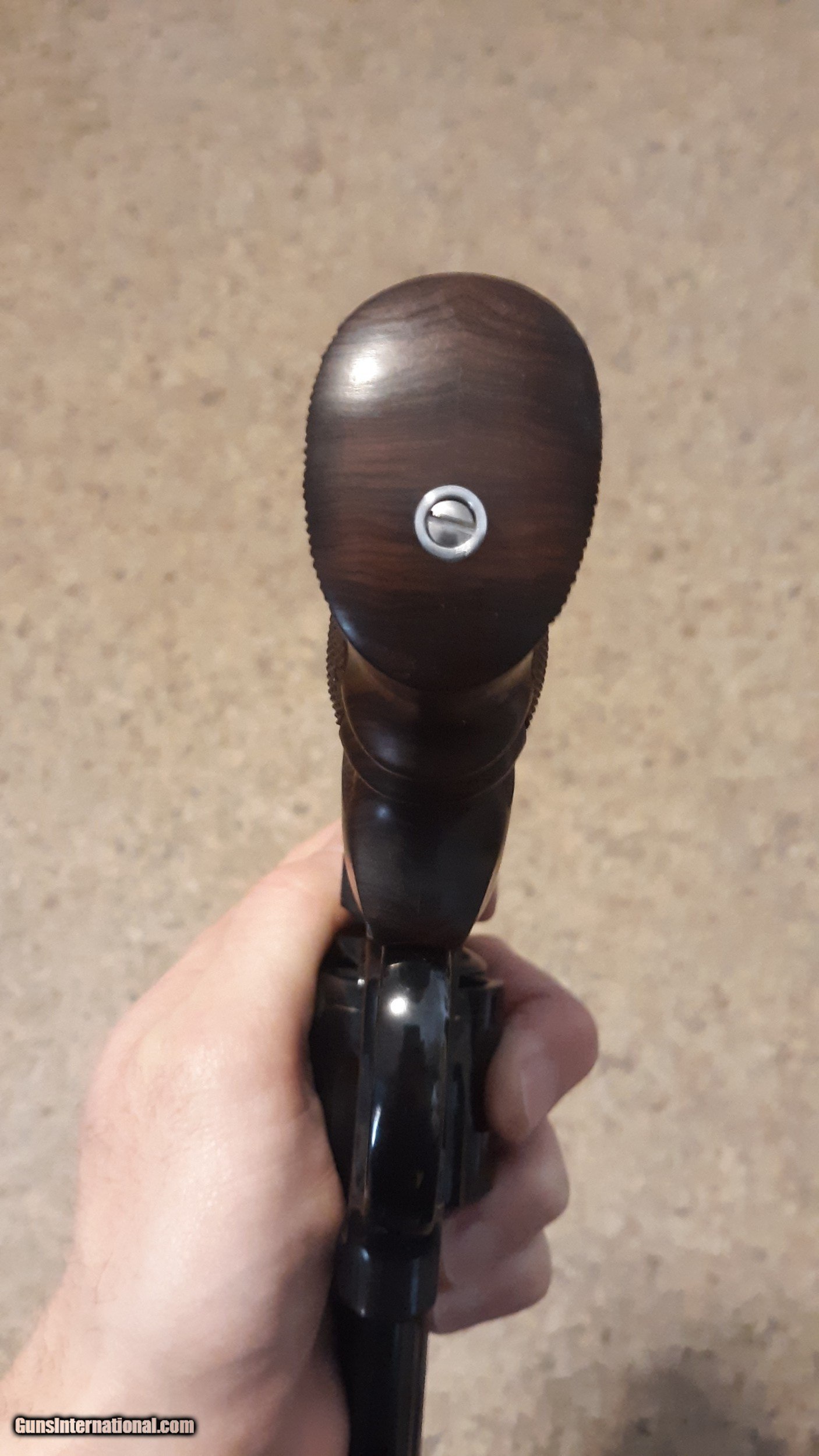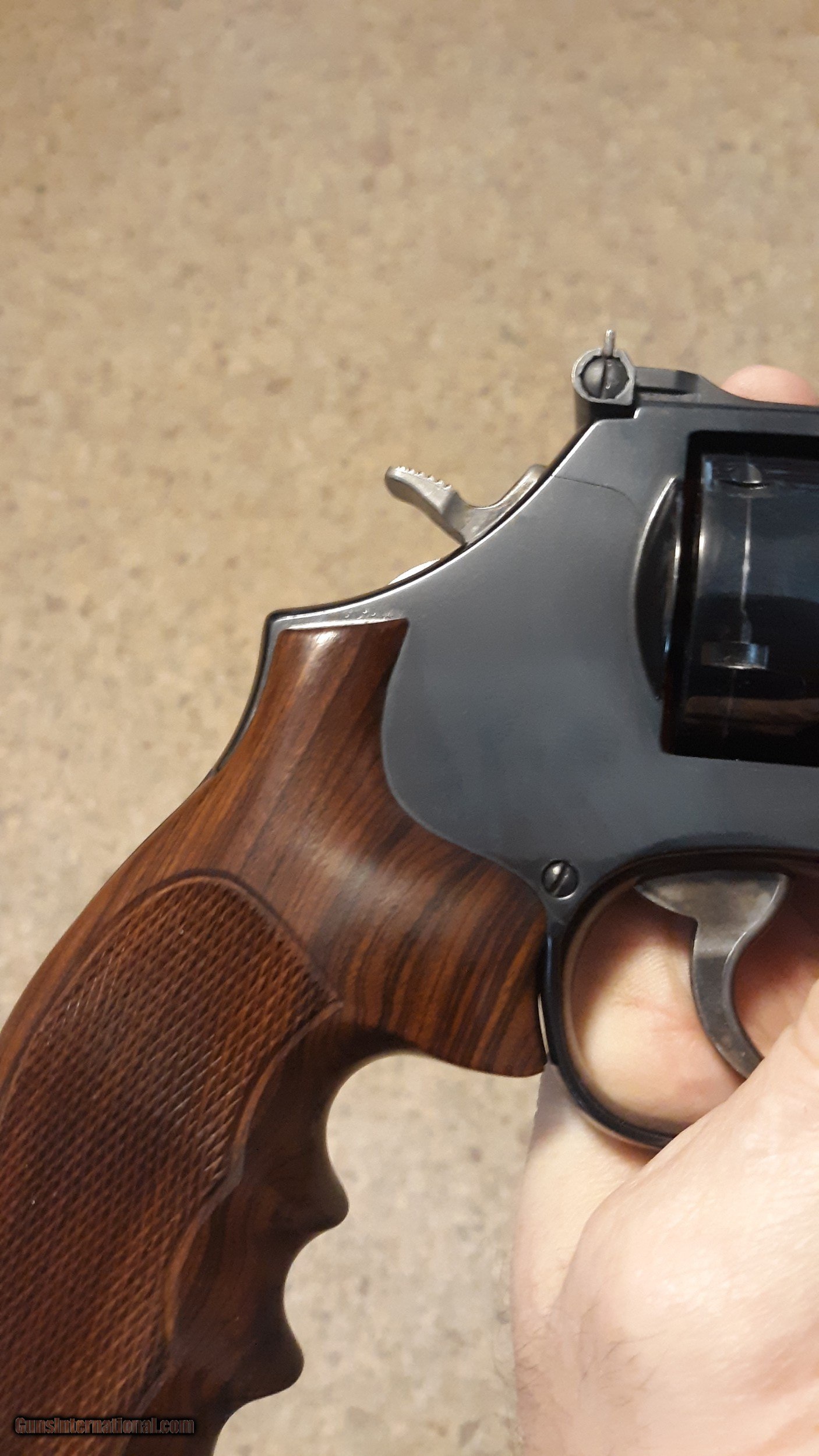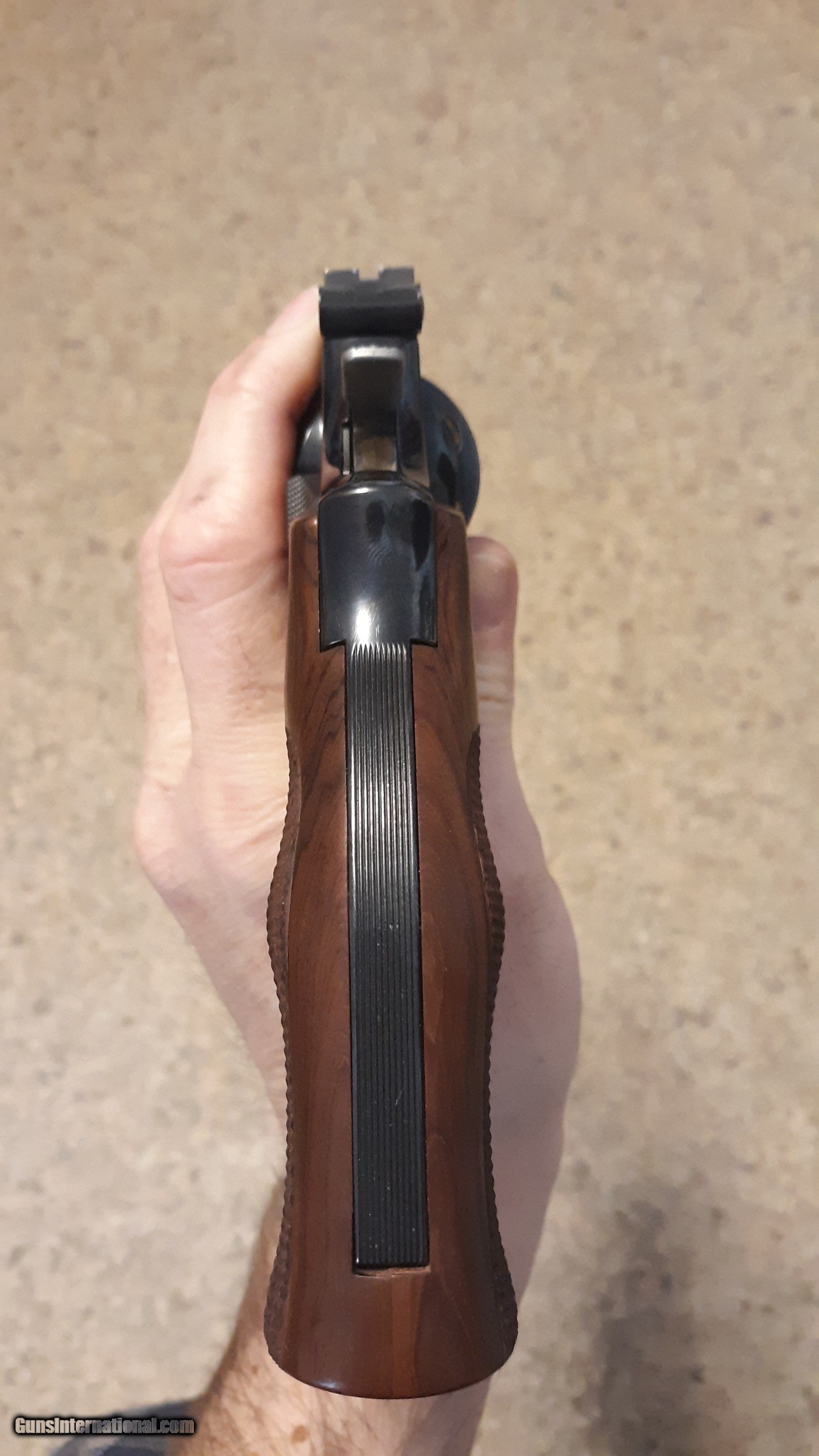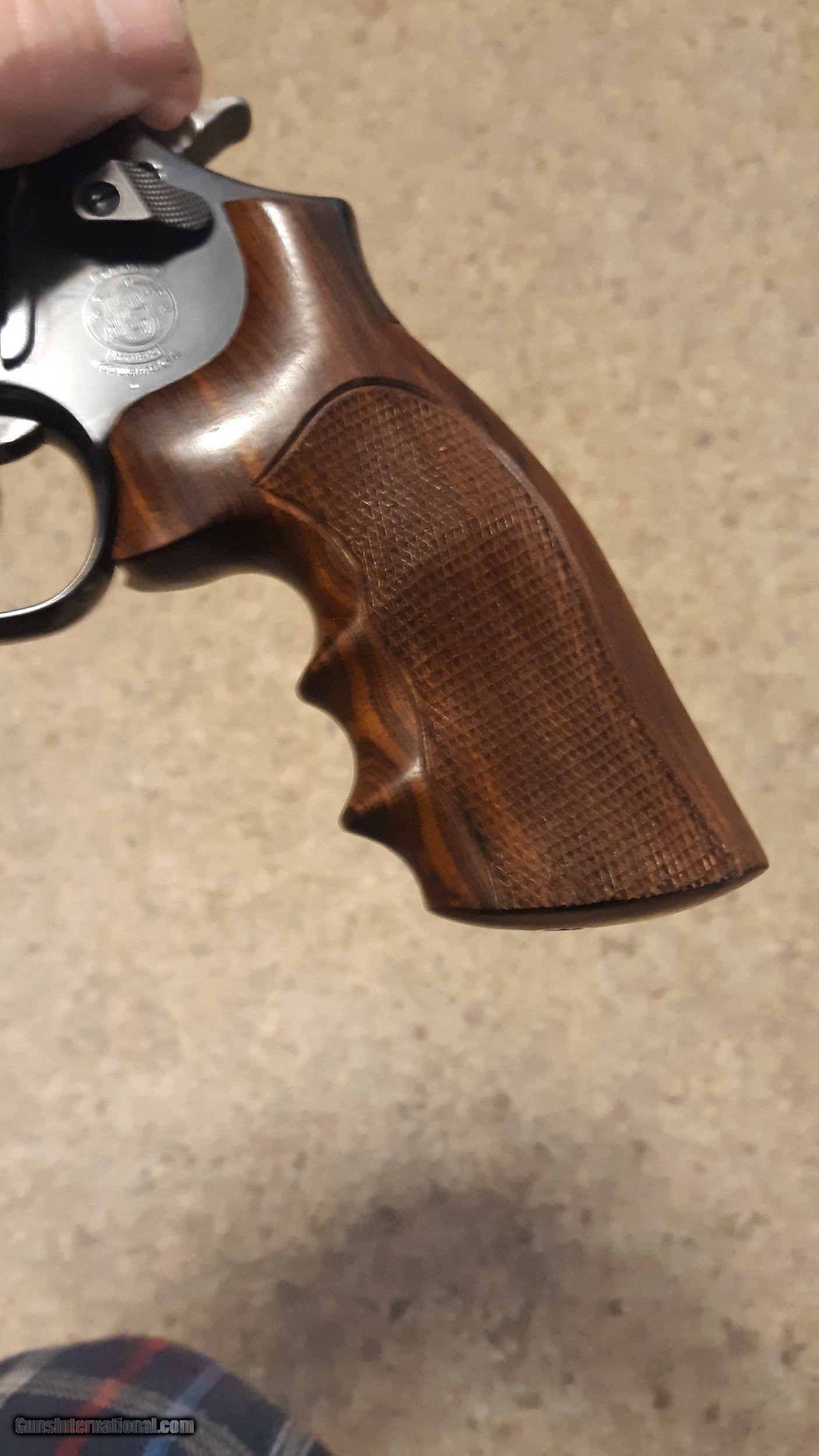 Description: Basically like new 586-8 4 inch barrel. Locks up tight as the day it left the factory. Houge exotic wood checkered grips, box, paperwork. Buyer pays shipping. SOLD Manufacturer: Smith and Wesson Model: 586-8 Caliber Info: 357 Chambers: 6 Condition: Excellent Metal Condition: Excellent, no scratches or blemishes Wood Condition: Excellent, brand new Houge grips Bore Condition: Excellent |