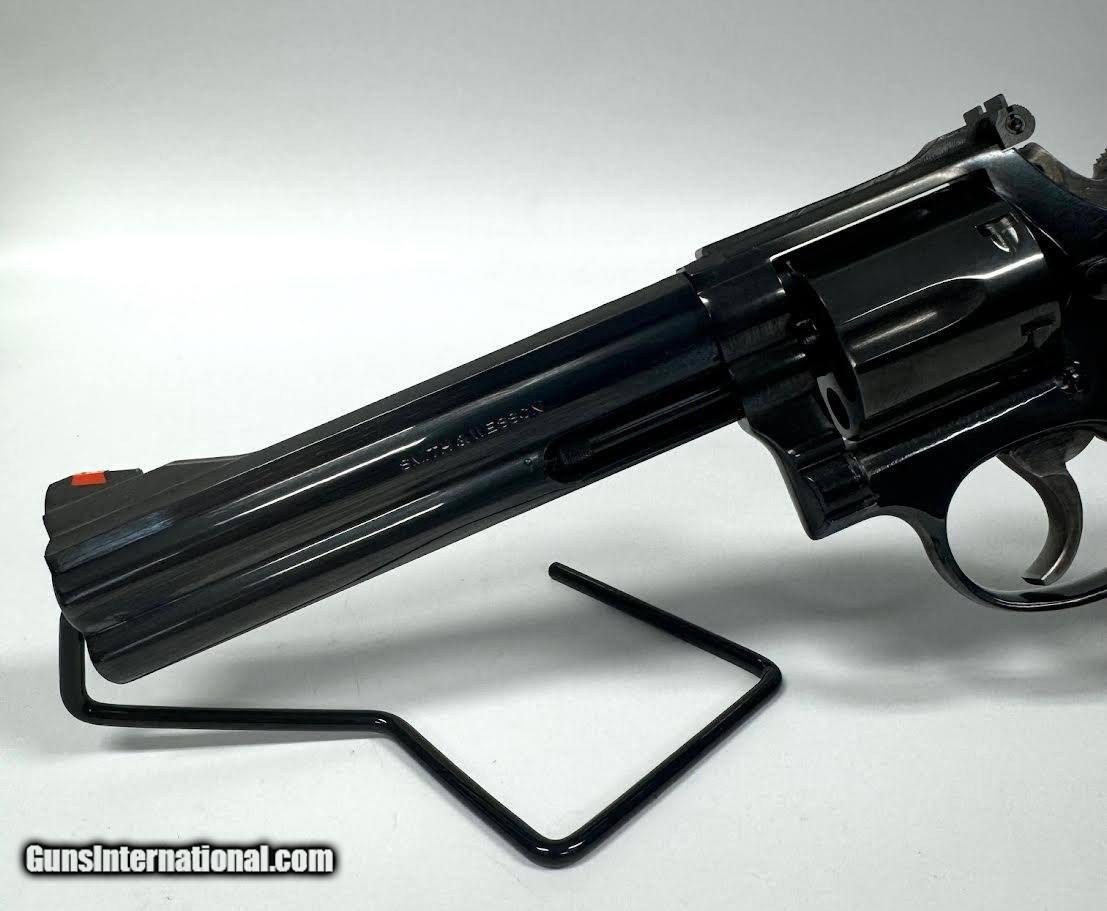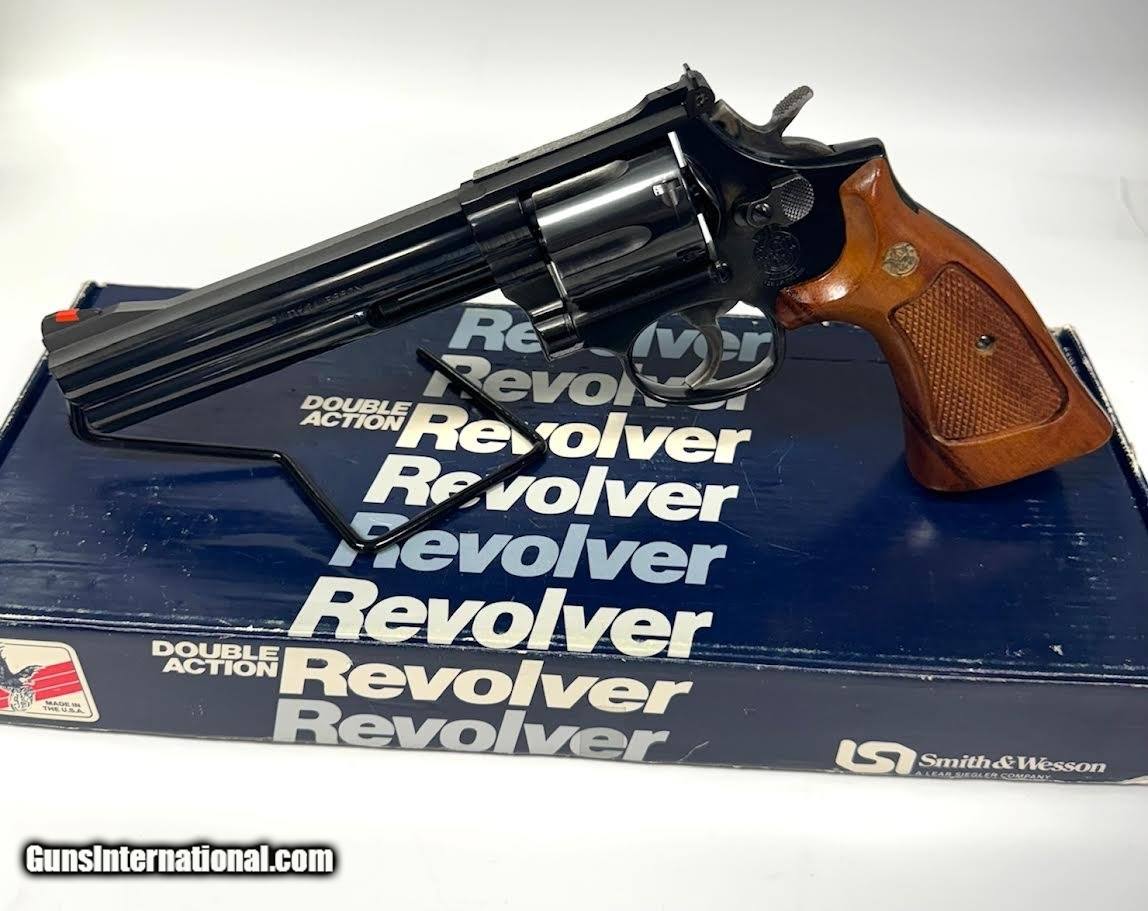 Description: Guns Listing ID: 491094 Smith and Wesson Distinguished Combat Magnum Model M586-1 revolver in .357 Magnum. Serial #AUZ2452. Barrel measures approx. 5-7/8\". Capacity: 6 rounds. Includes original box. Finish shows light wear. Timing and lockup are good. Clean and shiny bore& cylinder SOLD Manufacturer: SMITH & WESSON Model: 586-1 Caliber Info: .357 MAG Condition: Used - Non-Certified Barrels: 5.8 Finish: blued |