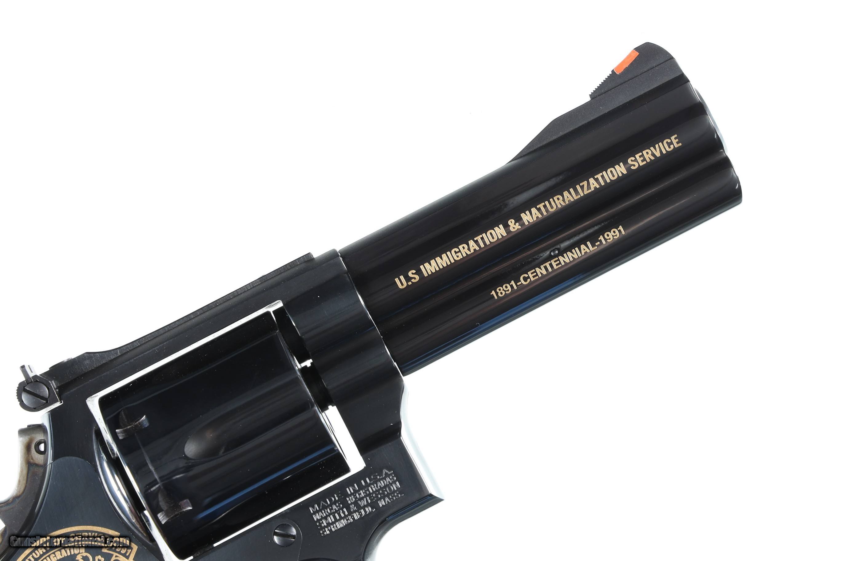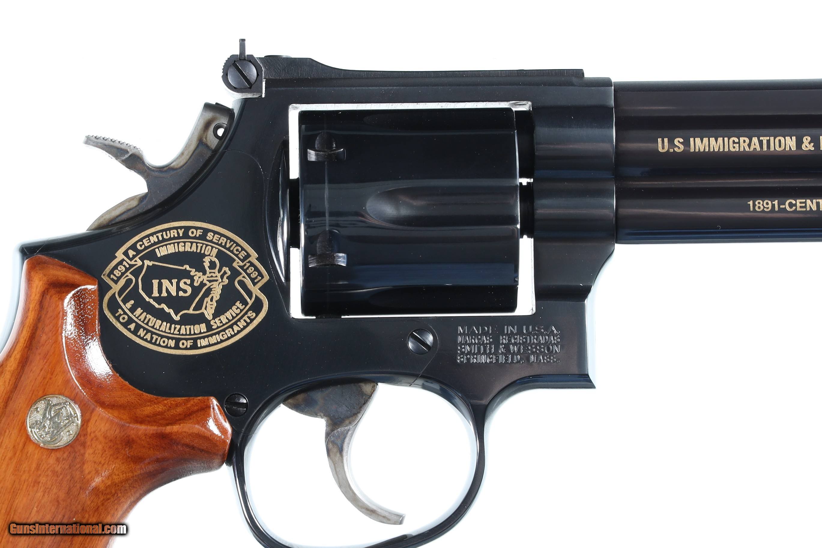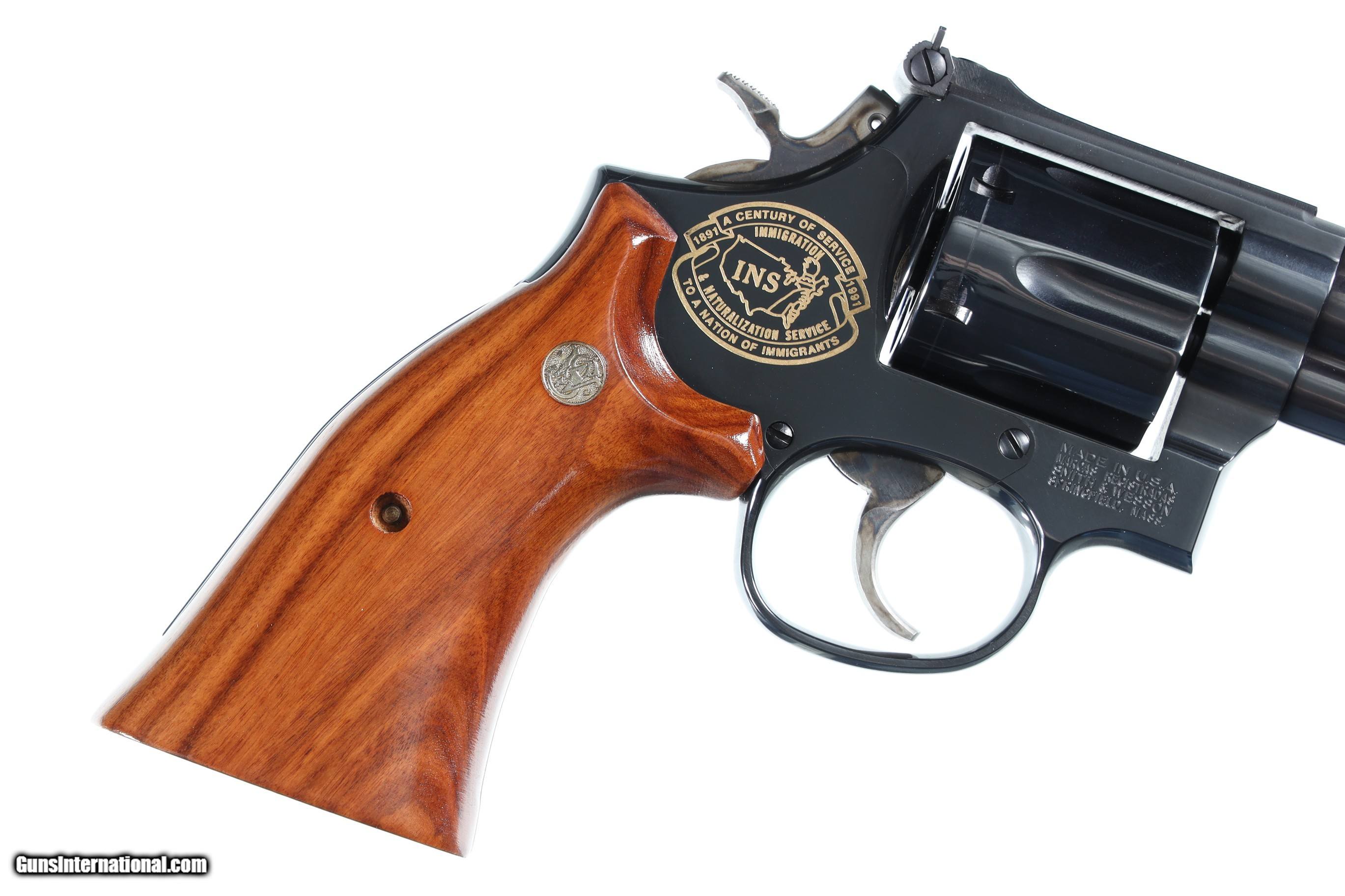 Description: Smith & Wesson U.S. Immigration & Naturalization Service Centennial Model 586-3 L Frame , 6 shot fluted cylinder with adjustable sights and factory smooth traget stocks. Near new condition with light handling. • Free Shipping, No Credit Card Fees. • Lay-a-way available for this firearm. • 1/3 Down, a 1/3 in 30 Days 1/3 in 60 Days. SOLD Handgun Caliber: .357 Magnum Manufacturer: Smith & Wesson Model: 586-3 Serial Number: BJD0602 Barrel Length: 4 |