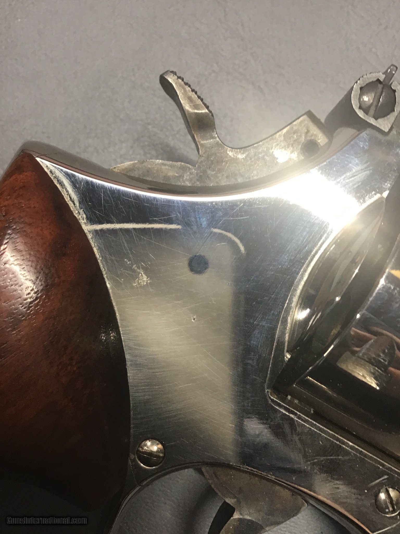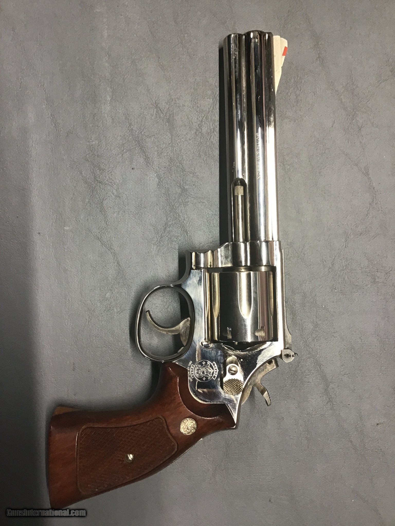 Description: Guns Listing ID: 1273097 Silver 6 round revolver Minor wear near muzzle on right side Minor wear on cylinder Original wooden grips Small blemish above grip on right side SOLD Manufacturer: SMITH & WESSON Model: 586 Caliber Info: .357 MAG Condition: Used - Non-Certified Barrels: 6 BARREL Finish: SILVER |