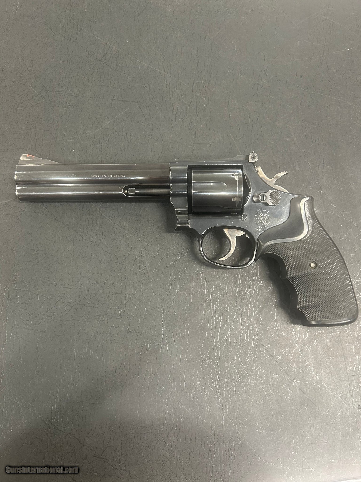 THIS IS A SMITH & WESSON 586 DOUBLE ACTION REVOLVER CHAMBERED IN 357 MAGNUM. IT FEATURES A 6‚ MAGNAPORTED BARREL, RUBBER PACHMAYR GRIPS, AND SIX SHOT CYLINDER. IT IS IN VERY FGOOD USED CONDITION WITH MINIMAL HOLSTER WEAR. IT LOCKS UP GREAT AND IS IN GOOD TIME.