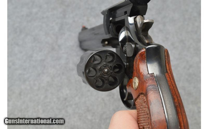Description: Here is an example of a 8 3/8" S&W 586 (no dash) that has seen some carry time but would make an excellent shooter. The rail set up makes it perfect for a scope to sight in for a future hunt. SOLD Caliber Info: .357 Mag. Chambers: 6 Shot revolving cylinder. Metal Condition: Very good to excellent. Wood Condition: Very good to fair. Finish loss throughout and some light chipping on bottom of butt. Bore Condition: Excellent, clean & sharp. Barrels: 8 3/8" Blued. Triggers: Grooved, color case hardened. Stock: Grips are checkered hardwood with S&W medallions. Weight: 51 oz. Sights: Front: blade with orange insert. Rail included for mounting a scope. Item Location: Sun Prairie, WI |