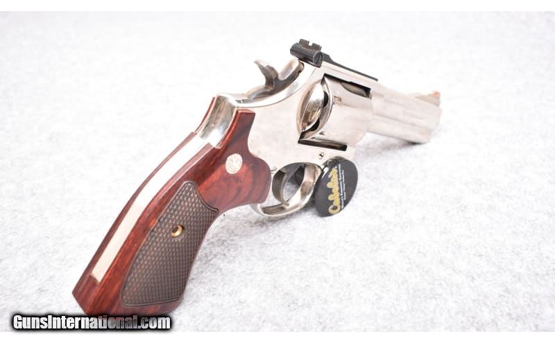 Description: .357 Magnum SOLD Chambers: .357 Magnum Metal Condition: Stainless Steel frame in excellent condition Wood Condition: Wooden grips in excellent condition Bore Condition: "Clean, sharp Barrels: 4" Stainless Steel Barrel Weight: 2.5lbs Sights: "Red ramp front sight, adjustable back sight Item Location: Billings, MT |