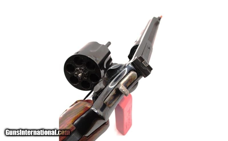 Description: This Smith & Wesson model 586-4 is a rock solid performer in .357 Magnum. It features target sights, smooth double action trigger, knurled hammer, and hand-filling wood grips. Also, will fire 38 Special for fun low recoil shooting. This gun is in perfect condition. Firearm only, no extras. .357 Magnum SOLD Chambers: 6 ROUND CYLINDER .357 MAGNUM Metal Condition: EXCELLENT Wood Condition: EXCELLENT Bore Condition: BRIGHT AND CLEAN Barrels: 6 Triggers: Factory double and single action trigger Butt Pad: Oversize checkered walnut grips Weight: 2 LB 14 OZ Sights: "Serrated ramp with red insert, adjustable white-outline notch Item Location: Grandville, MI |