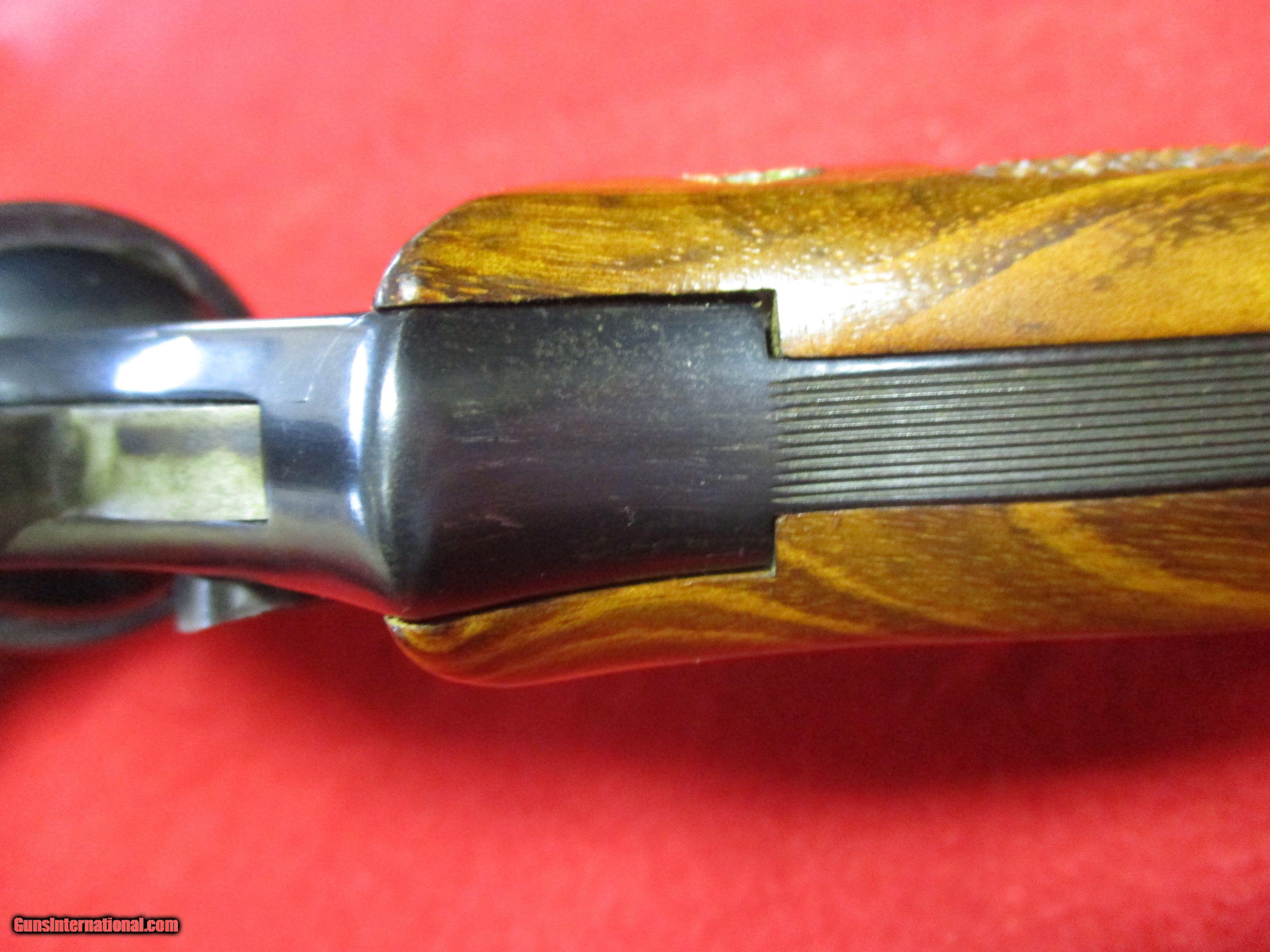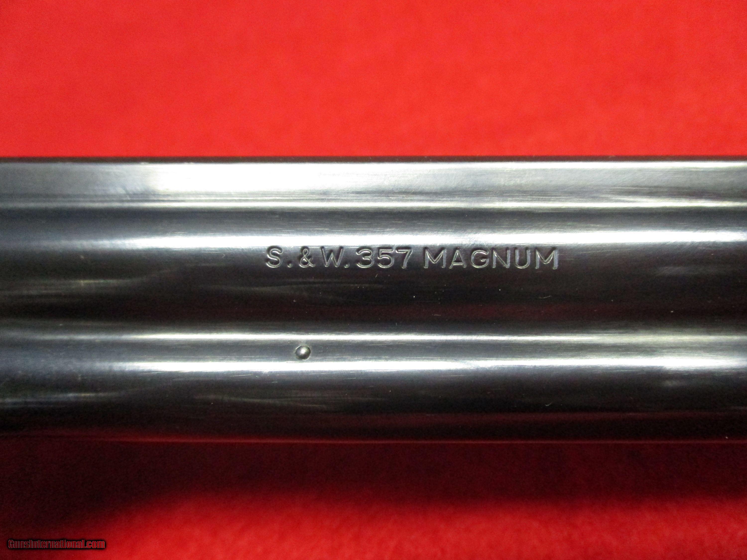 Description: This is perhaps one of Smith & Wesson’s most important models. The 586 was intended to allow the shooter to have a revolver chambered for the 357 Magnum that could handle firing the cartridge on a regular basis. The original Model 19 in .357 Magnum was built under the premise of carrying the gun with .357 Magnum ammo for duty, but practice shooting the revolver with .38 Special ammo. When many tried shooting them with .357 ammo regularly, the frames began to crack, rendering them useless. As such, a new frame larger than the “K” (upon which the Model 19 was built) was needed. This resulted in the slightly larger “L” frame, from which many of Smith & Wesson’s most popular models are built on, the 586 being one of these. This is the original “Dash-0” variation. This was the first version and as such did not have a dash number. It features a long 8.375-inch barrel – excellent for target shooting or even deer hunting as some have used the 586 for that purpose. Other features of this revolver include a square butt frame, .400-inch serrated target trigger, .375-inch semi-target hammer, 1/8” Patridge front target sight, and Micrometer-click rear sight. The serrated backstrap has 10 grooves. The grips are traditional checkered wood and are quite beautiful. Smith & Wesson refers to these as “target stocks.” The serial number, according to the Standard Catalog of Smith & Wesson, 4th Edition, indicates this gun was manufactured in 1985. The Model 586 has been used for everything from hunting to target shooting. It has also been used by law enforcement. The .357 is a powerful cartridge, and many appreciate it for firepower to this day. It has even been used to disable a moving vehicle by putting a round through the car’s engine block on more than one occasion. This revolver is pre-owned, but the bore looks like it left the factory yesterday. It has been well cared for the most part. There is minor wear on the backstrap. Otherwise, the 586 is in excellent condition. The box exhibits water damage, but the internal paperwork has not been affected. The spare barrel is not original to the firearm and was purchased separately. It exhibits finish wear on both sides, but the bore is in spectacular condition. One interesting aspect of this beautiful firearm is that, unlike later S&W models, this one has no trigger lock. This is a desirable feature of the older S&W revolvers and the expression “pre-lock” is a common denotation of this feature. This revolver would be an excellent addition to any S&W owner’s collection. SOLD Manufacturer: Smith & Wesson Model: M586 Dash-0 or No-Dash Serial Number: ADZ3672 Caliber Info: .357 Remington Magnum Chambers: 6 Ejectors: Hand Ejector Condition: Used - Excellent Bore Condition: Excellent Barrels: 8.375 inches (212.7mm) Barrel Type: Full-Lug Action: Double Action Triggers: .400-inch semi-target Stock: S&W Target Grips Finish: Blued Sights: Patridge Front, Micrometer-click Rear |