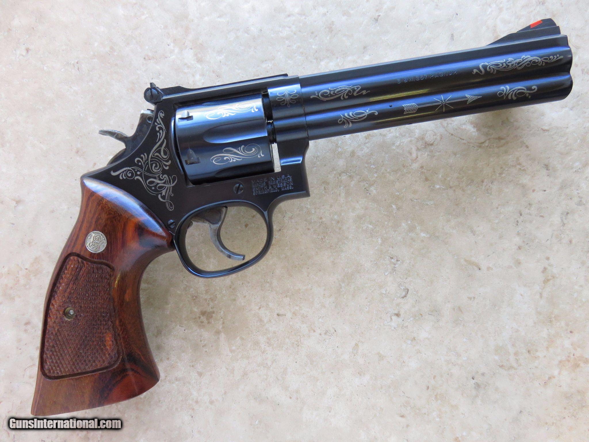 Smith & Wesson Model 586, Factory Lazer Engraved, Cal. .357 Magnum, 6 Inch Barrel, Blue Finish