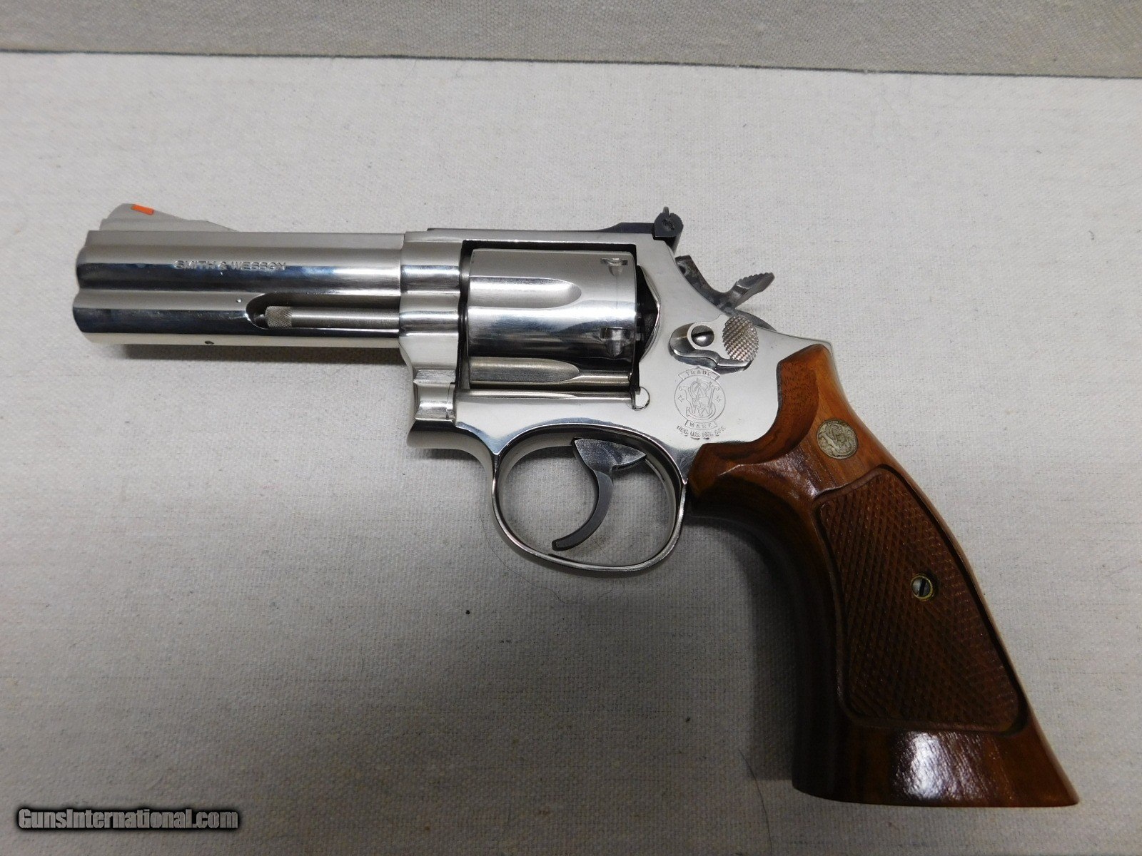 Description: Smith & Wesson Nickel Model 586 No Dash,357 Magnum,4" Barrel, Standard Hammer, Smooth Trigger, Full Lug,Square Butt,Excellent Nickel and Grips,Tight Action, Proper Timing, Unturned Screws!! Store hours Thurs-Fri-10AM-8PM Sat-9AM-12PM All Other times please leave a message,Thank You! No California Sales Lower 48 State Sales only Pa. Residents 6% Sales Tax applicable Shipping $ 35.00 SOLD Handgun Caliber: .357 Magnum Manufacturer: Smith & Wesson Model: 586 Serial Number: AUM6129 Barrel Length: 4 |