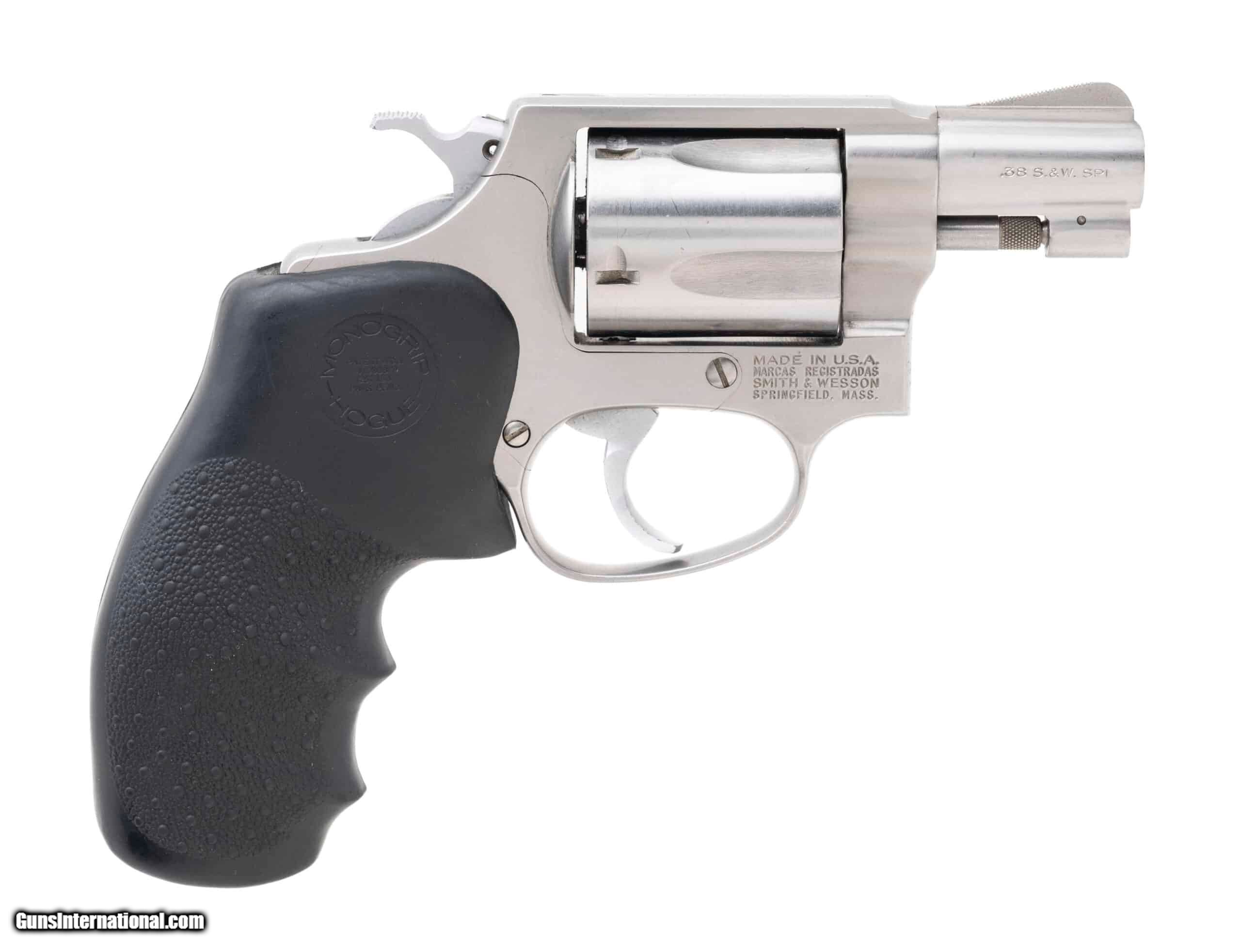 Description: "SN: BDD0685, Made in 1988, .38 Special with a 2"" snub nose barrel. Bore is excellent. Double action snub nose stainless revolver. Metal and grips are in near excellent condition with minor wear. Overall near excellent condition. SOLD |