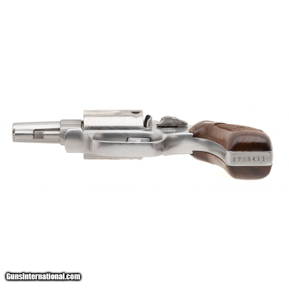 SN: R208411. Made in 1970's. .38 Special with a 2 inch barrel. Bore is excellent. Stainless steel snub nose revolver with checkered wood grips. Overall condition is excellent.