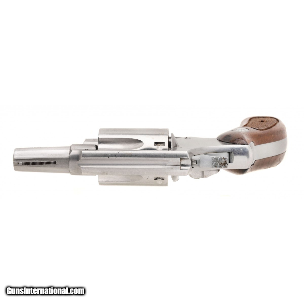 Description: " SN:R23268. Made circa 1960's, with a 2"" barrel. Bore is in excellent condition. stainless steel Snubnose revolver with wood grips. Overall condition is excellent. Comes with box. Consignment. SOLD |