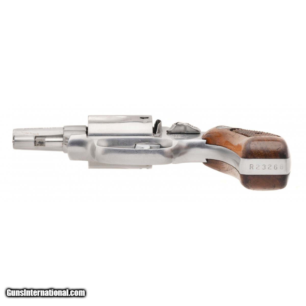 SN:R23268. Made circa 1960's, with a 2"" barrel. Bore is in excellent condition. stainless steel Snubnose revolver with wood grips. Overall condition is excellent. Comes with box. Consignment.