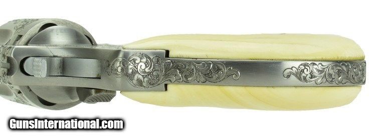 Smith & Wesson Alvin White Engraved 60 .38 Special caliber revolver. Beautiful Alvin White engraved stainless Chiefs Special. Has very fine scroll and genuine ivory grips. The gun is not signed but the box label has a notation that says “Eng. A.A. White”. The work is certainly of a quality to have been done by Mr. White. The gun is in excellent condition with original box.