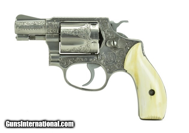 Description: " Smith & Wesson Alvin White Engraved 60 .38 Special caliber revolver. Beautiful Alvin White engraved stainless Chiefs Special. Has very fine scroll and genuine ivory grips. The gun is not signed but the box label has a notation that says “Eng. A.A. White”. The work is certainly of a quality to have been done by Mr. White. The gun is in excellent condition with original box.