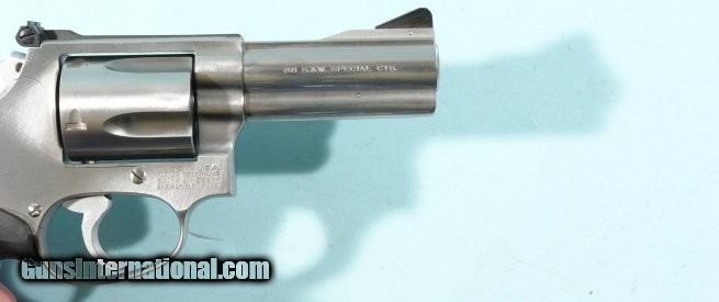 Description: 1993 LIKE NEW IN BOX SMITH & WESSON MODEL 60-4 OR 60 4 .38 SPECIAL CHIEFS SPECIAL 3" D.A. TARGET PRE-LOCK REVOLVER. Like new in original matching box with manual, paperwork, warranty card, cleaning tools, wax paper and partition. Uncle Mikes rubber grips with finger grooves feel great for med/lg hand. Stainless finish like new with NO signs of carry nor use. Mint bore and rifling. Hardly a drag line on cylinder at all. Target sights correct and correspond to end label. Wide serrated trigger and hammer. Pretty much unused and just out in safe many years ago. Does NOT have the cylinder release latch safety so that’s a plus(Pre-lock). SOLD |