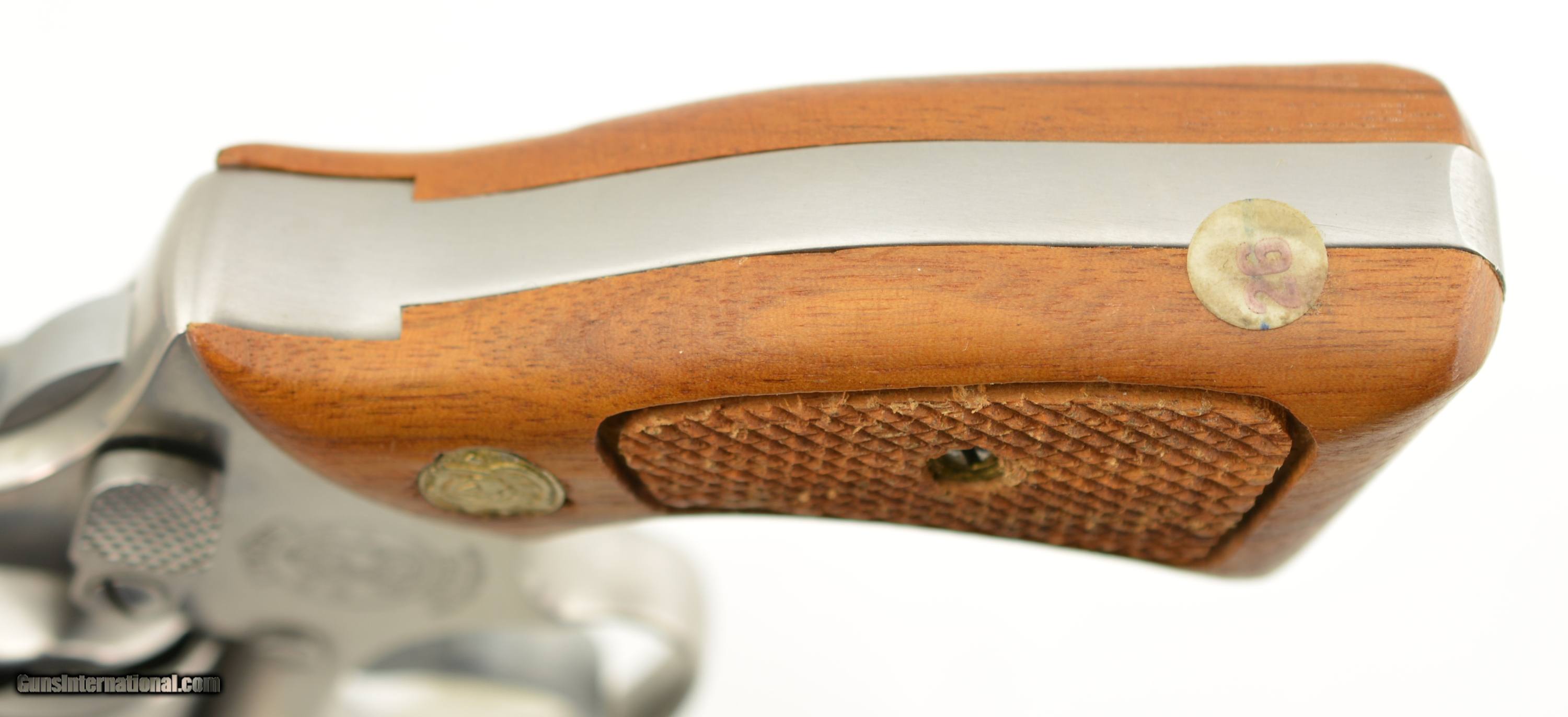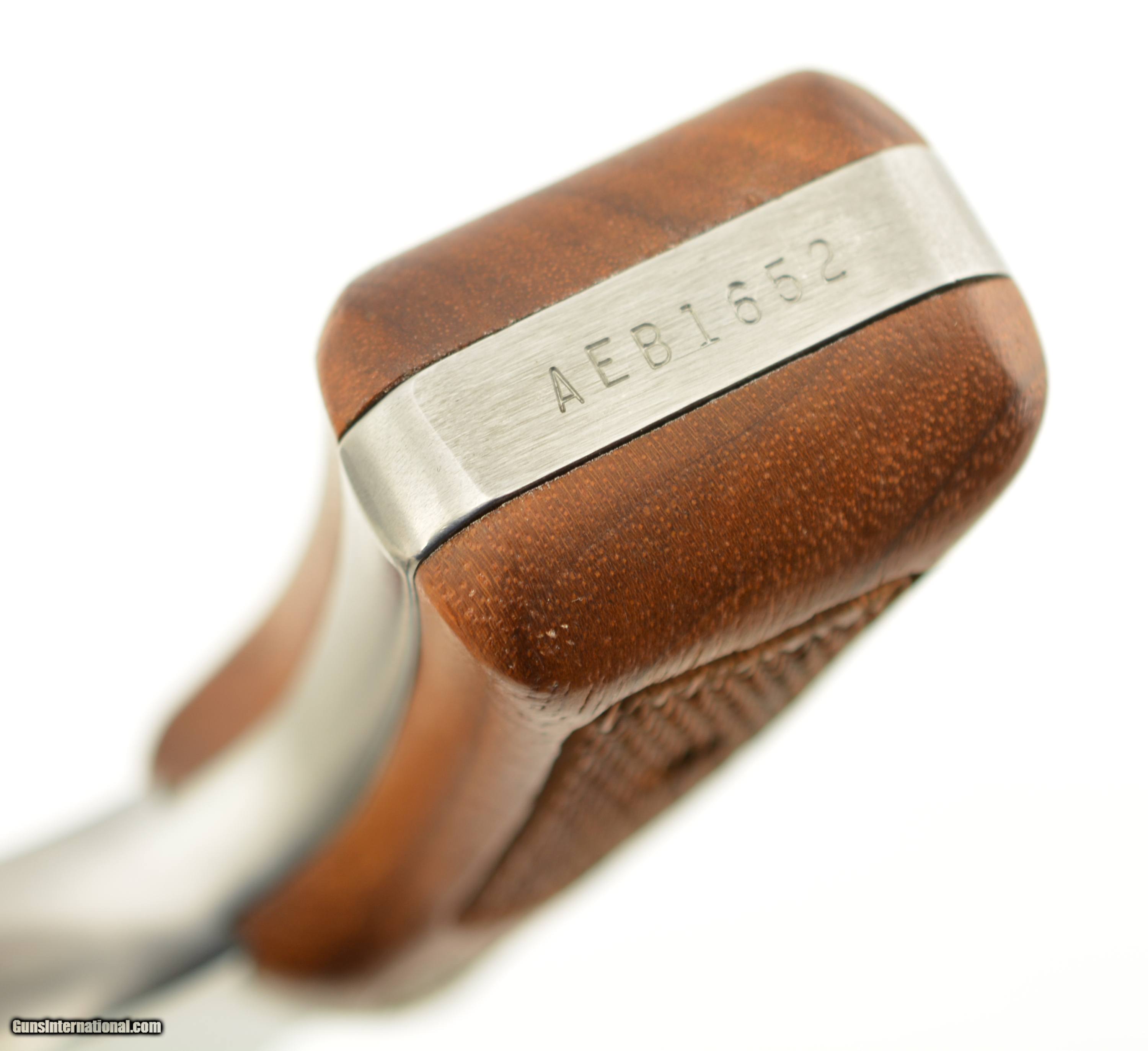 Description: Serial #AEB1652, .38 Special, 2" barrel with an excellent, bright bore. This 1980s built "no-dash" revolver is in practically unused condition and has only faint traces of a turn-ring on the cylinder marring the otherwise virtually pristine stainless steel finish. The checkered wood grips are likewise in excellent condition with almost no flattening of the points, and no noticeable handling marks. The revolver is housed in the original, numbered, one-piece Bangor Punta box with the original cleaning rod and papers. This is a virtually new-in-box Model 60, and would make a great addition to a collection. FFL SOLD Manufacturer: S&W Model: 60 Serial Number: AEB1652 Caliber Info: .38 Spl Gauge Info: .38 Spl |
