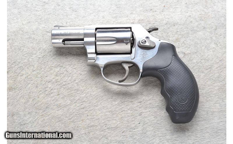 Description: This Smith & Wesson Model 60-14 is a stainless steel J-frame 5 shot double action revolver in .357 Magnum. It has a 2 inch barrel. A blade front sight and an internal notch rear sight. It has a textured black rubber grip with finger grooves and an extra black polymer grip. It has an Internal Locking Mechanism with two keys. .357 Magnum SOLD Chambers: 5 shot stainless steel fluted cylinder. Metal Condition: Very good. Minor handling mark. Bore Condition: Very good. Barrels: 2 inch stainless steel. Triggers: Double Action. Weight: 22 oz. Sights: Blade front. Integral notch rear. Item Location: Richfield, WI |