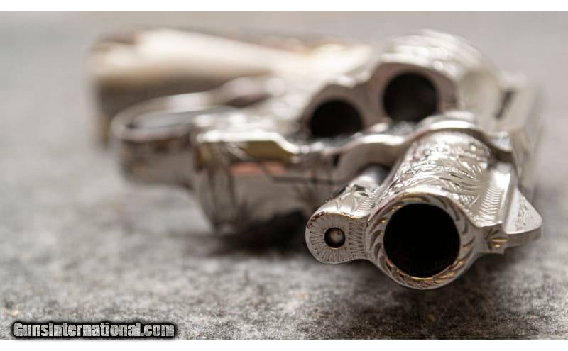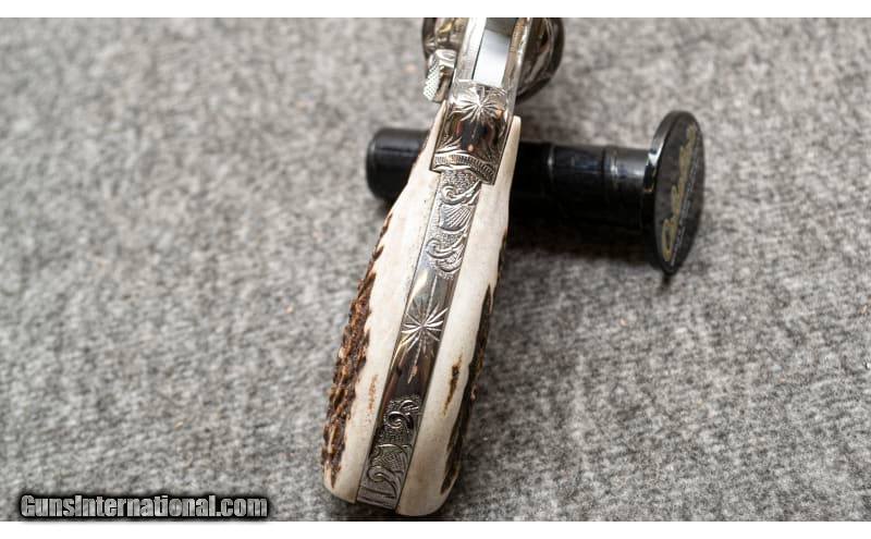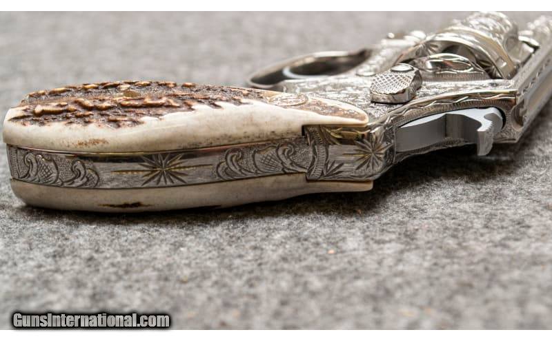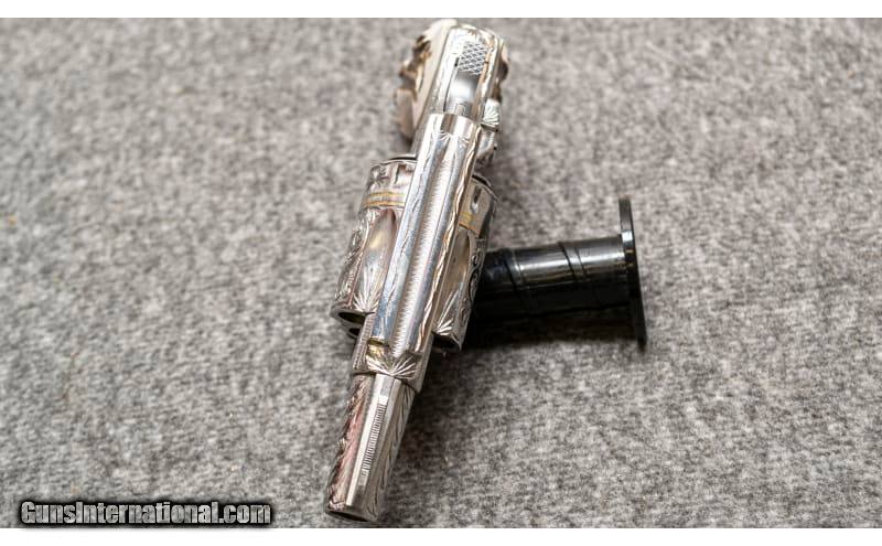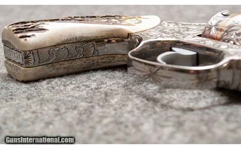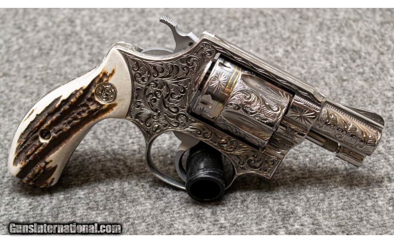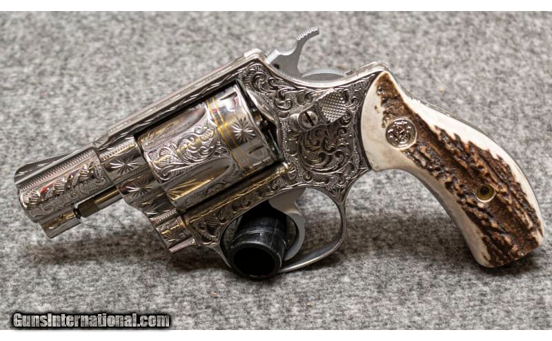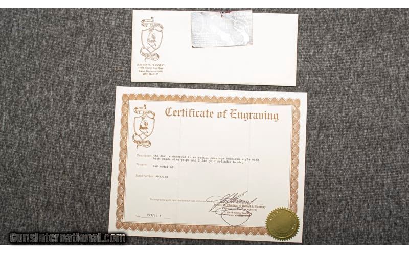 Description: Smith & Wesson Model 60 in 38 S&W Spl. This is like new in box condition. This was beautifully engraved by Flannery Engraving in Union, Kentucky. It does have 2 24 kart gold bands on the cylinder and has stag antler grips. It comes with the letter from Flannery and the soft case. .38 S&W Special SOLD Barrels: 2 Weight: 21 Oz. Item Location: Charleston, WV |