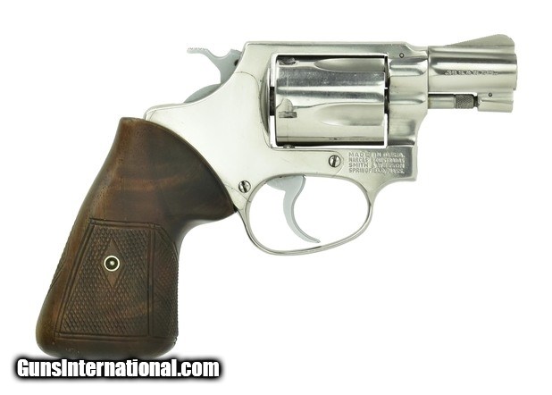 Description: Smith & Wesson 60 .38 Special caliber revolver. Stainless Chiefs Special with custom wood grips. Very good condition.
