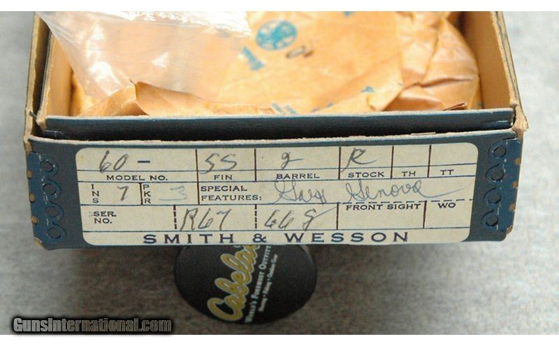 Description: Smith & Wesson Model 60 Revolver. Excellent condition, light wear and handling marks. S&W wood grips, manufactured fron 1970 to 1973. With original box, paper and tools. .38 Special SOLD Chambers: Revolver Metal Condition: Excellent Wood Condition: Excellent Bore Condition: Bright Barrels: 2 Triggers: Double and single action Butt Pad: Wood grips Sights: Fixed sights Item Location: La Vista, NE |