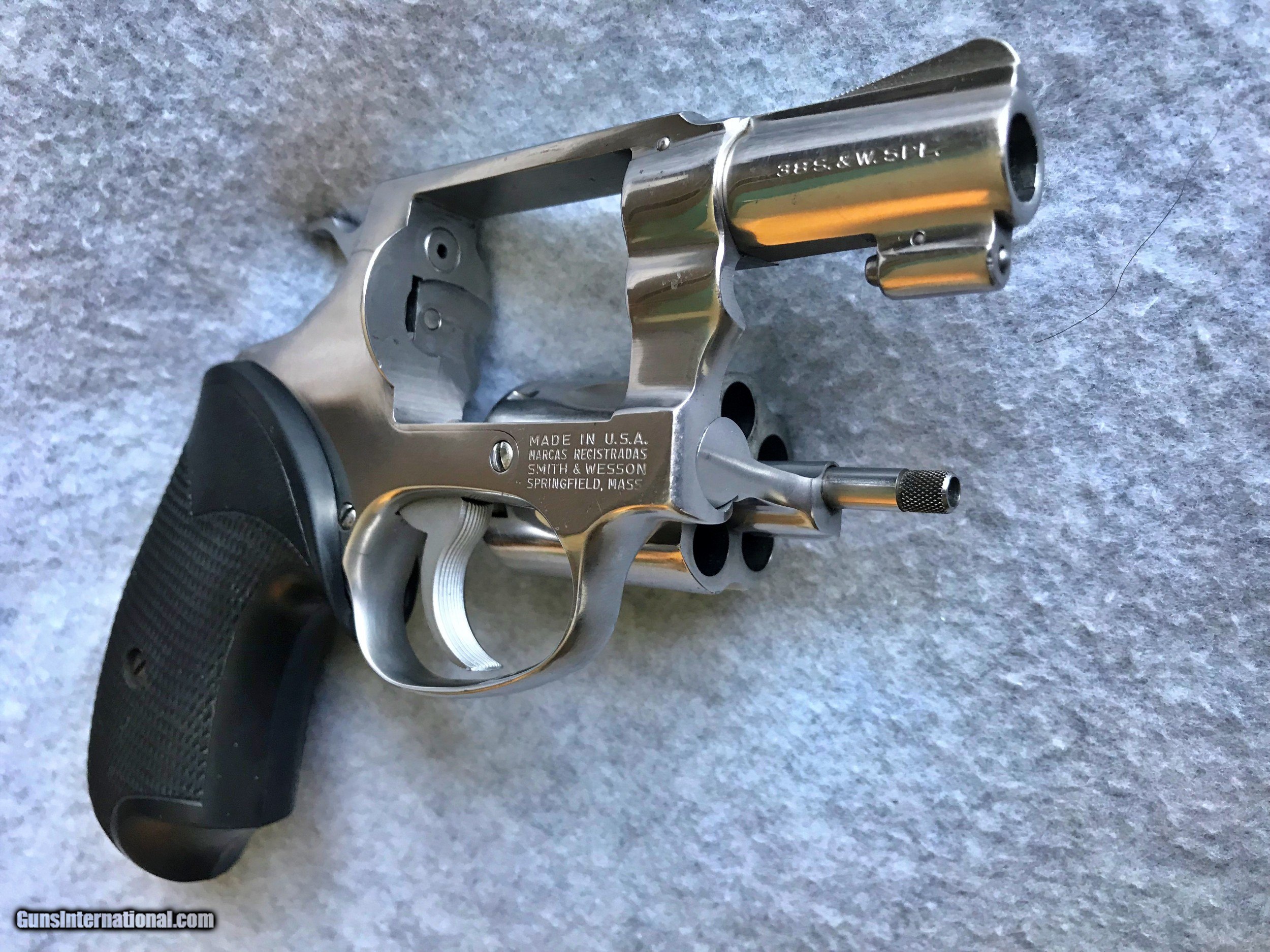 Description: THIS IS A S&W MODEL 60 STAINLESS STEEL J FRAME REVOLVER. IT HAS PACHMAYR GRIPS AND THE BARREL IS PINNED. THE REVOLVER LOCKS UP TIGHT AND IS IN GREAT SHAPE. IF YOU HAVE ANY QUESTIONS, PLEASE ASK. WE HOPE TO EARN YOUR BUSINESS. CHECK OUR OTHER FINE FIREARMS ON GUNS INTERNATIONAL BY ENTERING TACEQUIP IN THE QUICK SEARCH BOX ON THE TOP OF THE PAGE. TERMS AND CONDITIONS PRICES SHOWN ARE FOR PAYMENT BY U.S.P.S. MONEY ORDER OR BANK ISSUED CASHIERS CHECK. CREDIT CARD PAYMENTS ARE 3% ADDITIONAL. UPON CLOSING OF THE SALE, YOU WILL BE EMAILED AN INVOICE FOR PAYMENT. PAYMENT MUST BE RECEIVED WITHIN 5 BUSINESS DAYS OF THE INVOICE DATE OR THE SALE WILL BE CANCELLED AND BUYER REPORTED AS “A NON-PAYMENT BUYER”. IF YOU HAVE NOT SELECTED A FORM OF PAYMENT WITH YOUR BUYERS ORDER, YOU WILL BE BILLED FOR CREDIT CARD PAYMENT. IT IS UP TO THE BUYER TO DETERMINE IF THE FIREARM IS LEGAL IN YOUR AREA PRIOR TO YOUR PURCHASE. THE FIREARM WILL BE SHIPPED TO THE FFL HOLDER THAT YOU SPECIFY. THEIR RELEASE TO YOU IS BASED ON YOUR PRIOR ARRANGEMENTS WITH THEM. PLEASE REVIEW THE PHOTOS AND IF YOU HAVE ANY QUESTIONS, PLEASE EMAIL US. WE TAKE DETAILED PHOTOS AND ADD DESCRIPTIONS, BUT THERE MAY BE SOMETHING UP CLOSE THAT YOU WANT TO SEE OR ASK ABOUT. SOMETIMES OUR ITEMS SELL LOCALLY. WE WILL NOT SELL AN ITEM WHEN A BUYER COMMITS TO PURCHASE VIA EMAIL. SHIPPING NORMAL INSURED SHIPPING TO CONTIGUOUS UNITED STATES: LONG GUNS $45.00 HANDGUNS $35.00 HAWAII AND ALASKA: PRICE UPON REQUEST SALES TAX IF YOU ARE A RESIDENT OF NORTH CAROLINA, WE ARE REQUIRED TO COLLECT A 7% STATE SALES TAX I WANT IT WE FREQUENTLY RECEIVE MESSAGES AFTER HOURS FROM BUYERS THAT WANT TO KNOW IF A FIREARM IS STILL AVAILABLE. IT IS NOT UNUSUAL TO HAVE MORE THAN ONE INQUIRY FOR THE SAME FIREARM. IF YOU SEE A FIREARM THAT YOU WANT, CONTACT US HERE OR BY PHONE WITH THE GUNS INTERNATIONAL LISTING NUMBER, YOUR NAME AND ADDRESS AS IT APPEARS ON YOUR ID ALONG WITH YOUR PHONE NUMBER. WE WILL CONTACT THE FIRST PERSON TO PROVIDE THIS INFORMATION TO MAKE THE ARRANGEMENTS FOR PAYMENT AND SHIPPING. SOLD Manufacturer: SMITH & WESSON Model: 60 NO DASH Serial Number: R173XXX Caliber Info: 38 SPL Chambers: 5 Finish: STAINLESS STEEL |