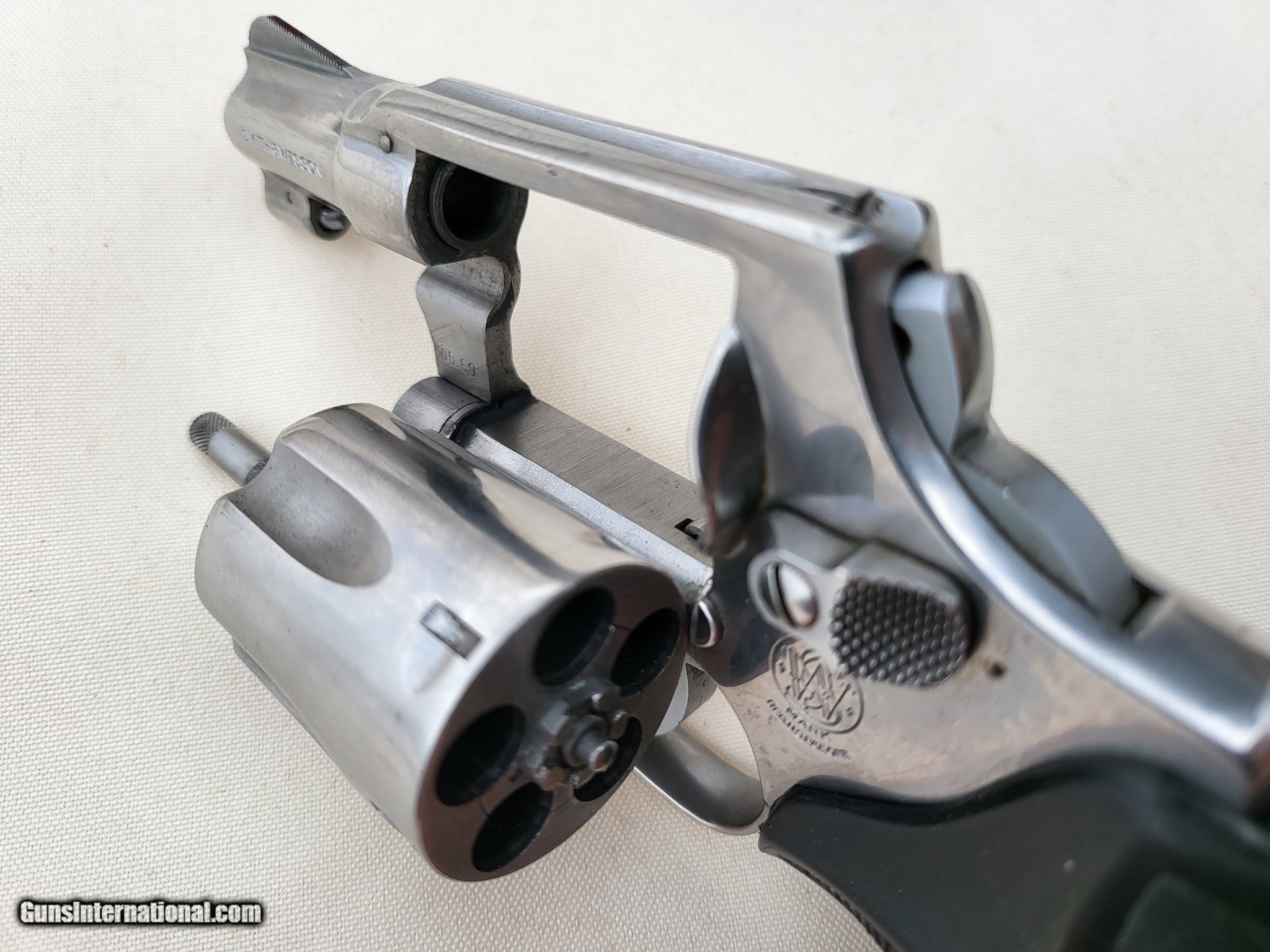 Description: Guns Listing ID: 487219 SMITH & WESSON MODEL 60 CHIEF‚‚S SPECIAL STAINLESS (.38 S&W SPECIAL) ==> FIRST STAINELSS STEEL REVOLVER MADE BY SMITH & WESSON! THIS IS A MODEL 60 (NO DASH)!!!!! The Model 60 began production in 1965 as the stainless Model 36, newly dubbed the Model 60. S&W M60 Chief‚‚s Special 2\" Snub Nose Stainless Steel Revolver, .38 S&W Special 5-Shot J-Frame Action: SA/DA Barrel: 2\" Caliber: .38 S&W Special Capacity: 5 shot cylinder Finish: Stainless Steel Frame: Steel Grip: Brown Checkered Walnut Wood Original Grips included AND currently has rubber Pachmayr grips installed Sights: Fixed Weight: 20 oz INCLUDES MATCHING SERIAL NUMBER ORIGINAL GRIPS! Estimated Date of Manufacturing 1969-1970. In 1969, S&W began using a serial number starting with \"R\". This Model 60 is a 6-digit \"R\" serial number that has NO DASH. In 1972, Model 60-1 began production. Due to gaps in S&W production records, the manufacture date is estimated off their records. This Model 60 does not have a box or any other documents and has a \"bobbed\" hammer. Smith & Wesson Model 60 (No Dash) .38 Special Revolver. This small revolver, designed primarily for plainclothesmen and off-duty police officers, made its public debut at The International Association of Chiefs of Police conference in 1950. At the conference, the Smith & Wesson sales force asked the police chiefs to vote on a name for the new revolver. The most commonly suggested name was .38 Chief’s Special®. Designed with the needs of law enforcement officials in mind, the Chief’s Special proved to be a popular revolver for personal protection due to its size and weight. When Smith & Wesson adopted model numbers in 1957, the Chiefs Special became the Model 36. The Model 60 was Smith & Wesson‚‚s first production stainless steel revolver and is the stainless version of the Model 36. Smith & Wesson J-Frame revolvers have had your back since 1950. These small revolvers were designed to fire full power rounds and are as simple and easy to use as they are reliable. It is no surprise that the Smith & Wesson J-Frame has become the most popular, small-frame, defense revolver on the mark SOLD Manufacturer: SMITH & WESSON Model: 60 No Dash Caliber Info: .38 SPL +P Condition: Used - Non-Certified Barrels: 2 BARREL Finish: STAINLESS STEEL |
